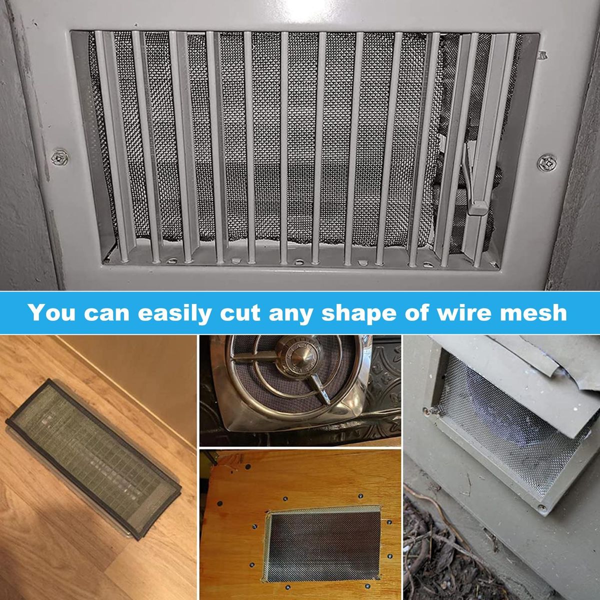 Designed to cover the vent area for your attic vents, bathroom vent, floor vents, drains, weep holes, dryer vent, pipes, wood burning stove vent,fireplace flue, refrigerator exhaust, heater vents, exhaust fan vents etc. Prevent wasps, mouse, rodents, spiders, snakes from your area.