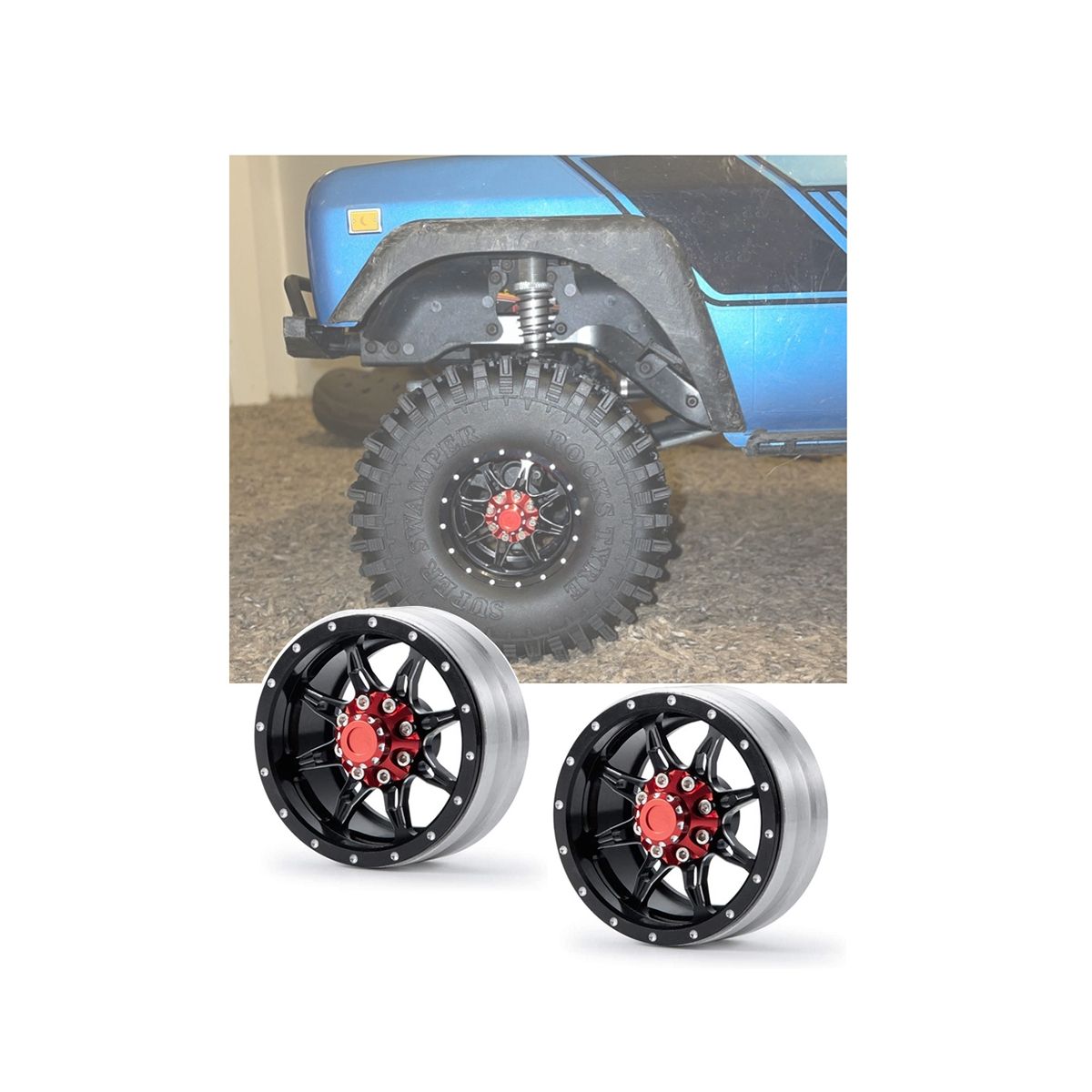 Description: Spoke alloy 1.9 inches wheel with beadlock design fits for most 1:10 rc rock crawlers cars.