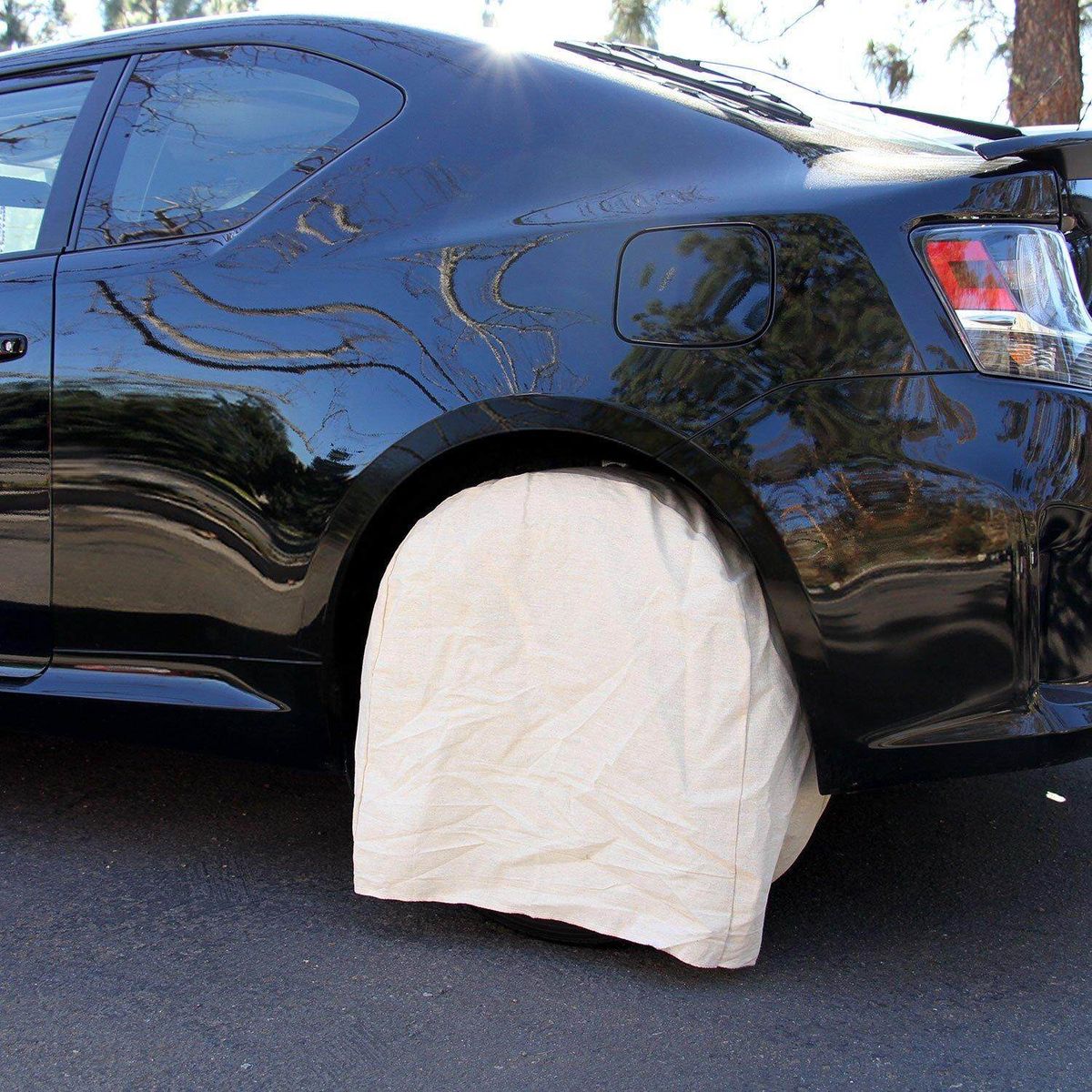 Protects tires and wheels from sun damage, rust and dirt when your RV is parked.