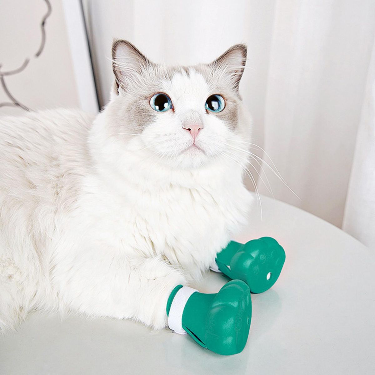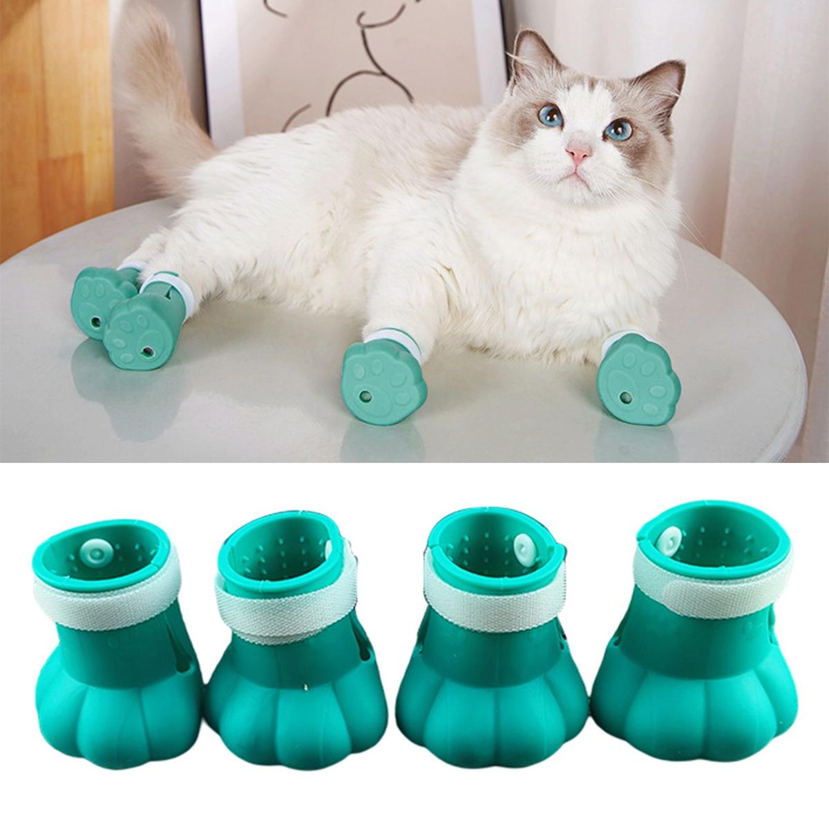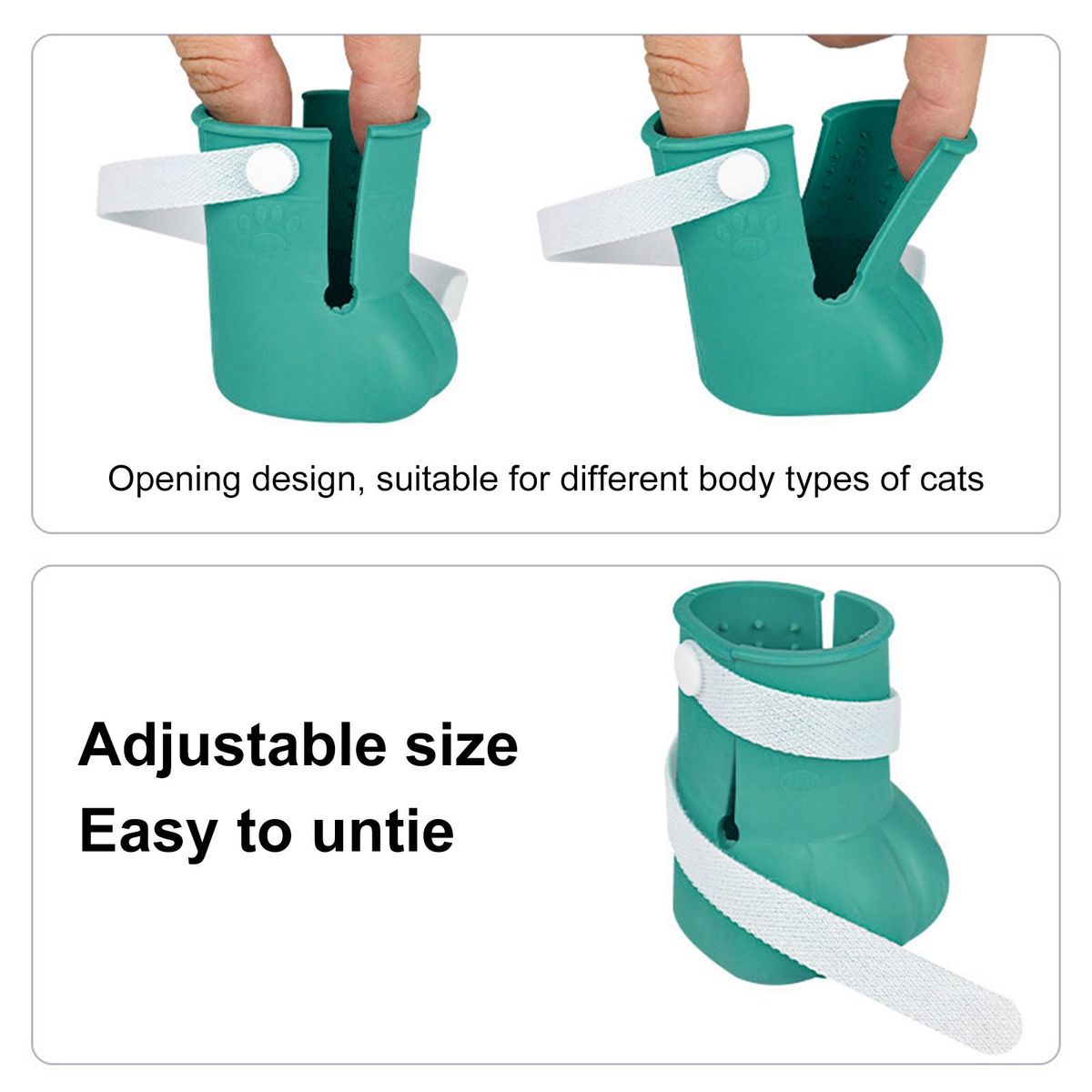 There is a fastener tape and large opening design for this cat foot cover, which can be adjusted for tightness and is suitable for cats of different sizes. It can stand on a flat bottom, with a leaking hole at the bottom to prevent water accumulation.