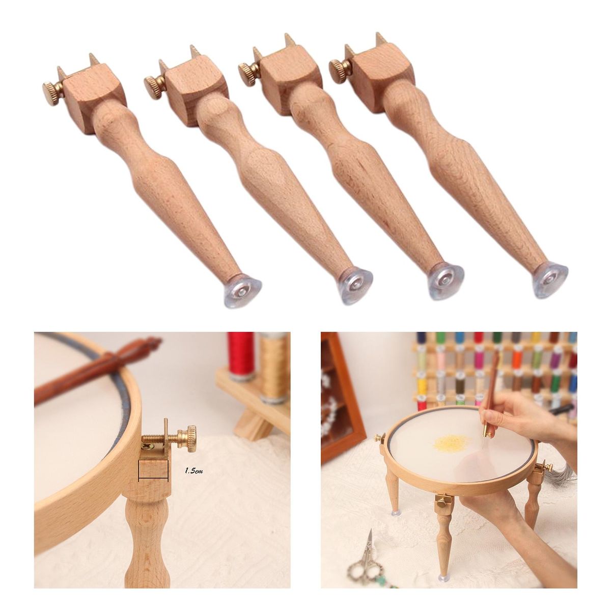 Made of high quality solid wood material, sturdy, long lasting use.Length is about 14cm/5.51 inch; The maximum thickness can be fixed 15mm.Suitable for embroidering stretch support, embroidering stretch heightening, suitable for square or round embroidery stretch.Can clip any size of embroidery hoop, cross stitch frame, etc.Perfect for embroidery, quilting, cross-stitch, needlepoint, silk-painting and so on.