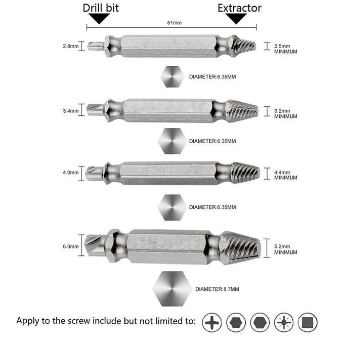 4Pcs Damaged Screw Extractor Set Easily Remove Stripped or Damaged Screws Double Ended Stripped Removers Hand Tool Sets