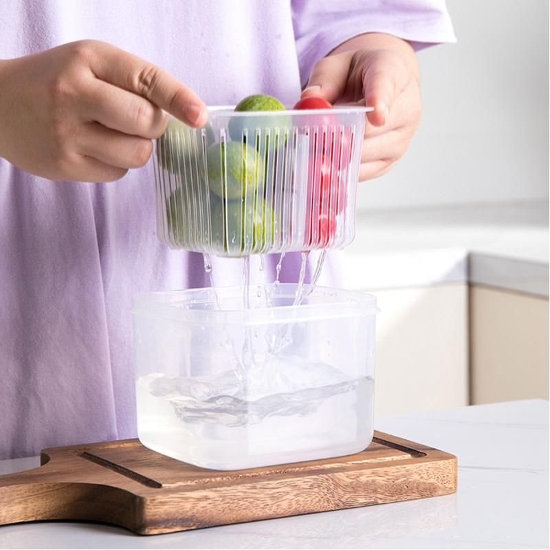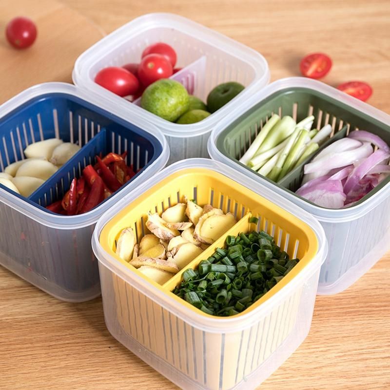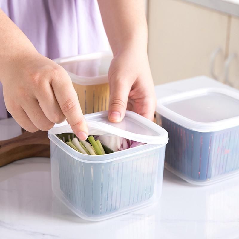 4Pcs Drain Fresh Box Compartmentalized Green OnionThe drain compartment keeps the flavor, the drain compartment in the box can drain water quickly and prolong the preservation time