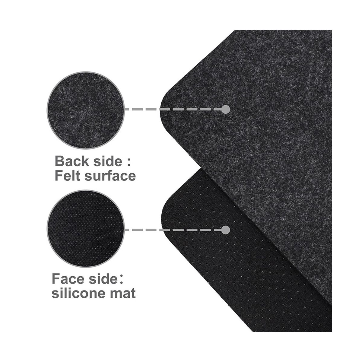 Tips - Place the felt side down to sliding; it is not recommended to wash the heat resistant mat directly in the dishwasher.