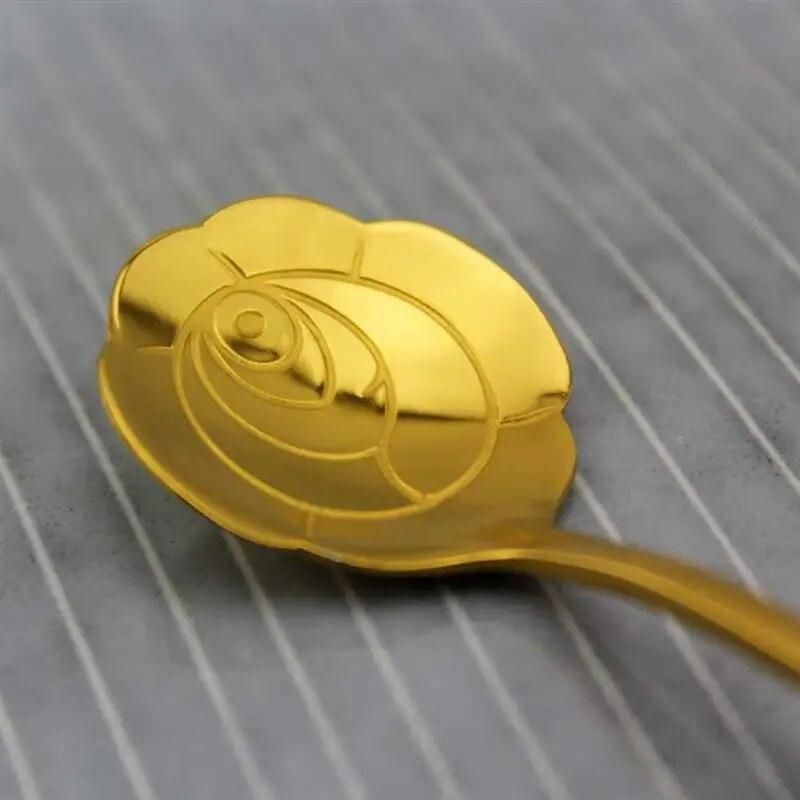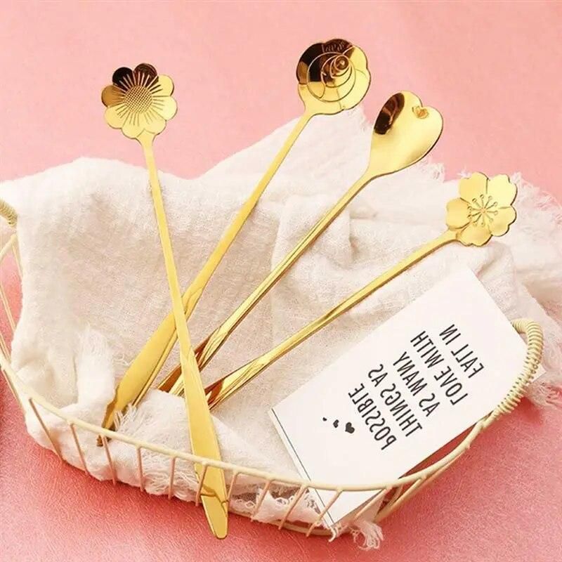 Buy 4pcs Flowers Design Gold Spoon Long Handle Dessert Tea Coffee Mixing Spoon Stainless Steel Vintage Teaspoons Drink Tableware in Nigeria