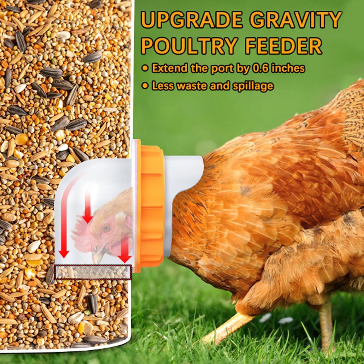 Offering automatic filling by gravity feed design, this automatic chicken feeder will allow a constant feed to work, minimizing feed waste, spillage and mess and saving you money on feeding costs.