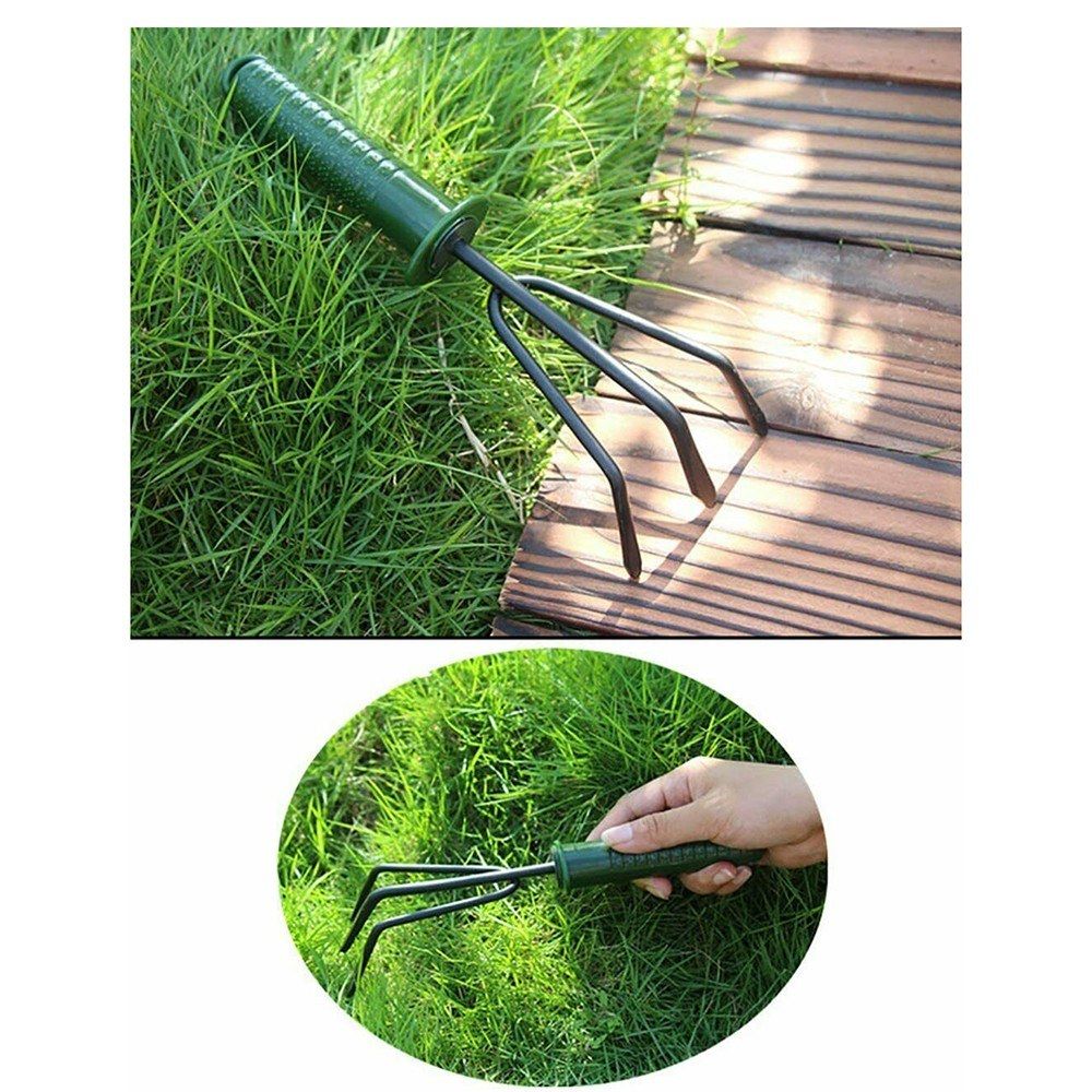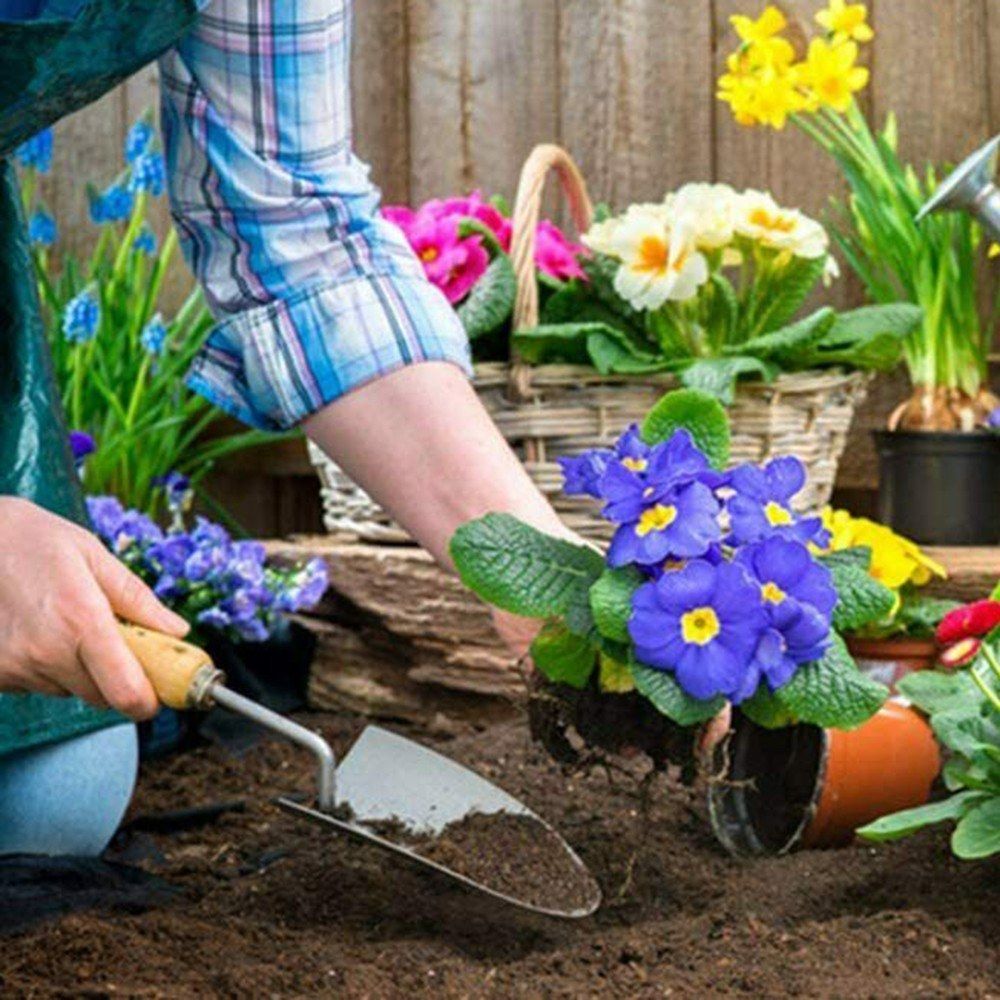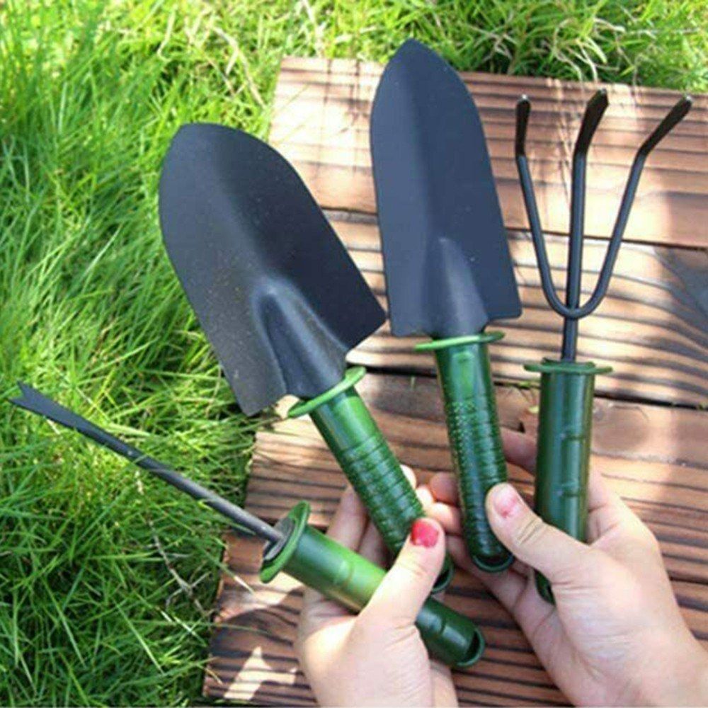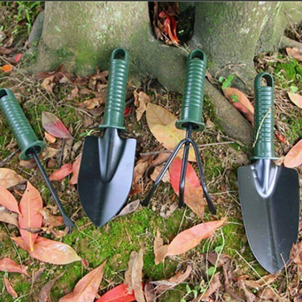 4pcs heavy duty gardening tools, includes a trowel shovel, rake, cultivator. Soft rubber hand shank, anti-slip confortable to grip, suitable for large or small sized hands to reduce fatigue. Metal shovel, high hardness, wear-resistant, waterproof and anti-rust.