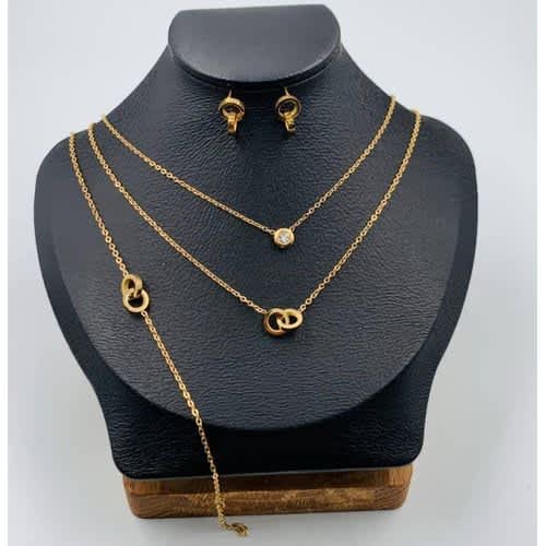 Buy 4pcs Gold Plated Buckle Double Layered Necklace, Bracelet in Nigeria