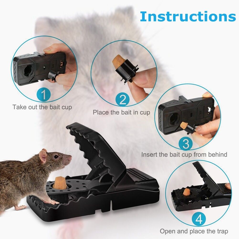 4pcs highly sensitive and powerful mousetrap mousetrapsFeature:1. The material is made of polycarbonate and ABS alloy.2. Suitable for mouse , easy to use.3. Harmless and excellent quality.4. Different designs and have a strong catching .5. Quality reusable mouse trap, bait latch spring rodent trap pest controlParameter::blackSize: 11CM×5CM×5.50CMMaterial: polycarbonate and ABS alloyThe package includes:4 * Mousetrap