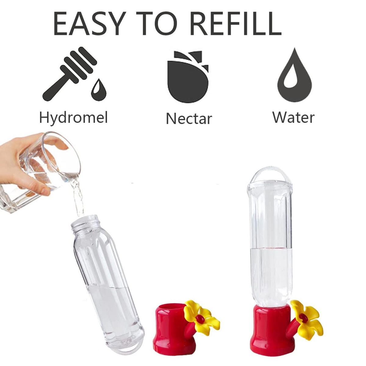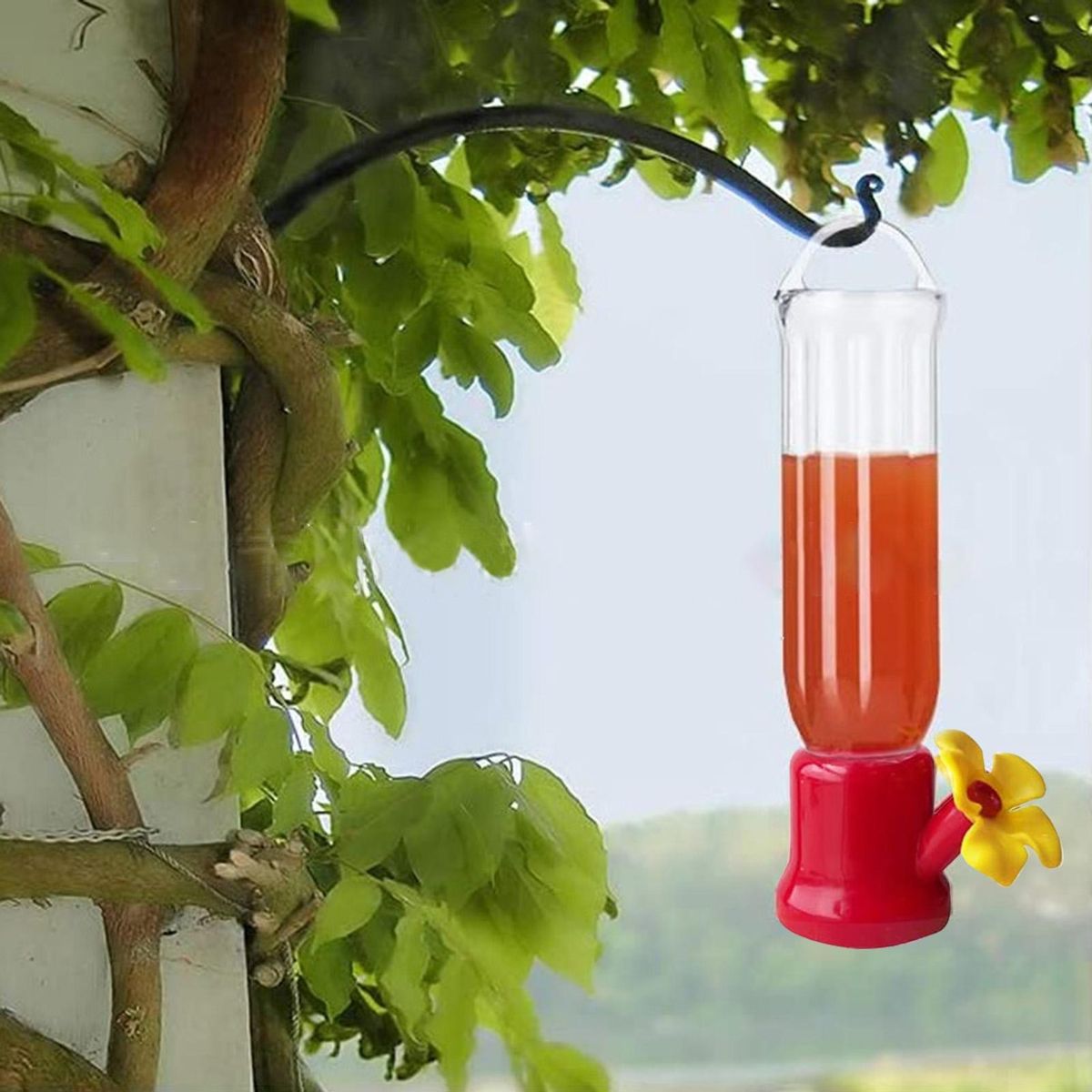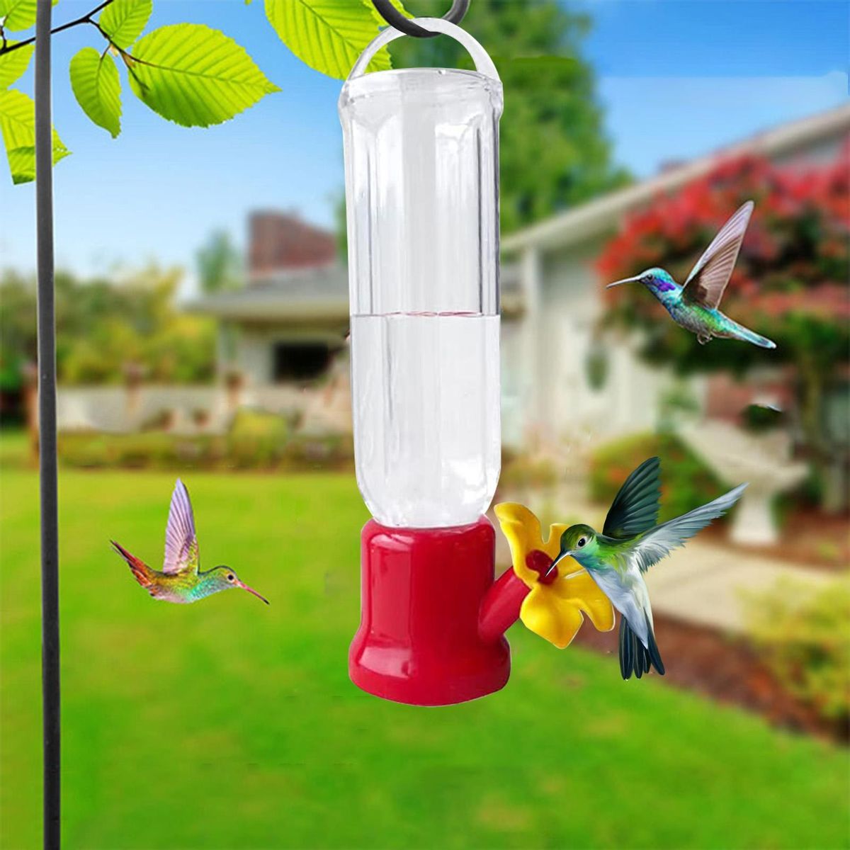 Offering the convenience of feeding, this bird feeder features an angled flower beak design that looks natural and is easily filled with water or nectar to attract hummingbirds to your home garden.