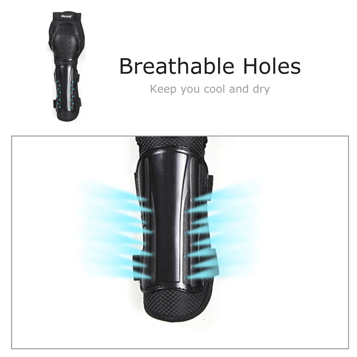The knee pads and elbow pads are constructed from tough PE shell and shock-absorbing foam padding to provide optimal protection for your knees and elbows. The elastic straps are easy to adjust to the customized fit for different people, great choice for cycling, motorcycle, motocross, skateboarding, skiing, etc.