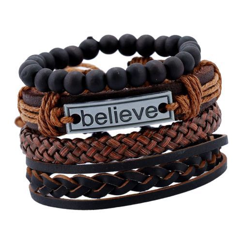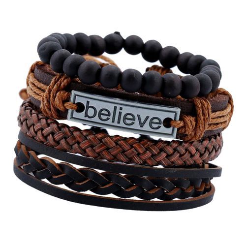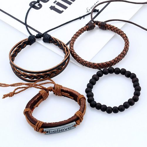 4 Pieces/Set Braided Leather Beads Bracelet