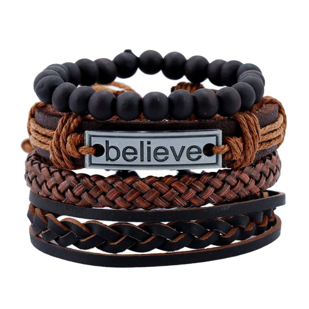 Multilayer Mens Bracelet;Braided Bangle Charms Jewelry Set