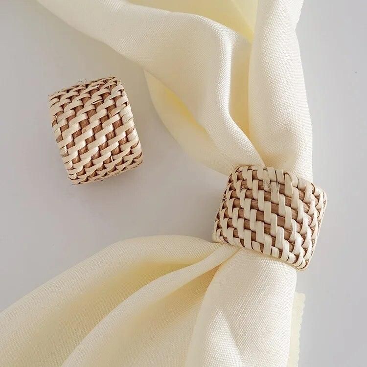 Buy 4pcs Rattan napkin ring decorative mouth cloth ring square towel ring handmade rattan napkin buckle in Nigeria