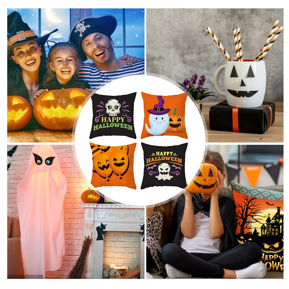5:Halloween features an atmosphere of terror, with a variety of scary decorations like hats of evil witches, bats or spiders, a special way to celebrate the festival. These Halloween cushion covers are full of related elements, perfect for creating a festive atmosphere, adding a thrill to your Halloween, also a fantastic greeting to welcome your guests.