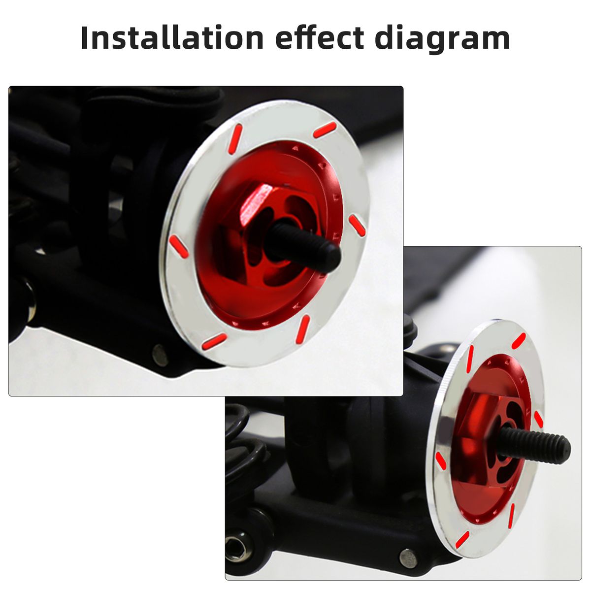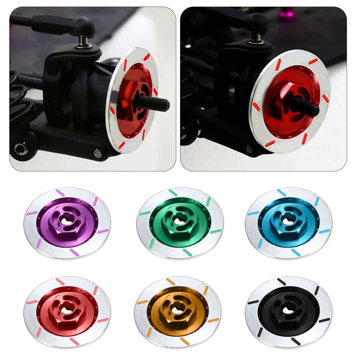 It has the function of an inner hexagon connector and has the characteristics of simulating disc brake decoration. Compatible with Traxxas HSP 94123 94122 D4 CS 1/10 RC Car.