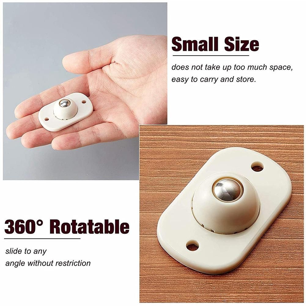 [360° Rotation]This adhesive casters pulley rollers, can slide to any angle without limit, completely silent during using. Suitable for makeup storage, kitchen, table top, bedroom, bathroom, living room and flower shelf storage.
