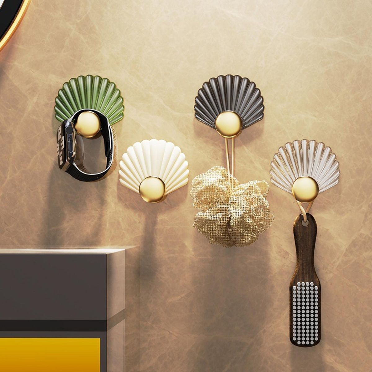 Featuring strong load-bearing, firm paste, waterproof and moisture-proof characteristics, the wall hanger can hold kitchen gadgets, shower balls, shower heads, keys, watches, etc.