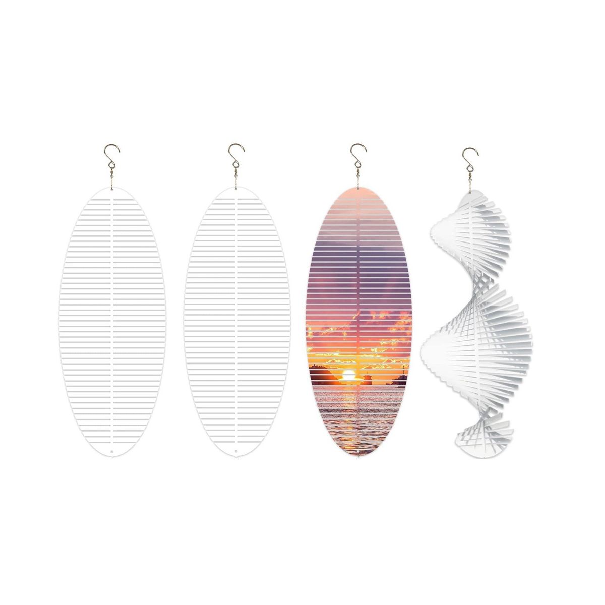 Easy to Install: the aluminum wind spinner is flat and blank shape when you receive it, they will be nice decorations after DIY printing, just unfold to the angle you desire, then hang it up, and it will spin freely to form a vivid, captivating and magical 3D vision