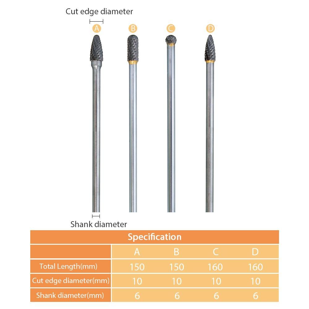 Buy 4Pcs Tungsten Steel 1/4'' Shank Rotary Cutting Burrs 10mm Cutting Edge Diameter 150/160mm Length for Carving Polishing Drilling in Nigeria