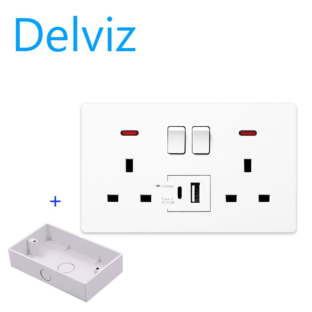 1. Double Socket USB 13A Electric Wall Plug Sockets Faceplate With 2 USB Outlets