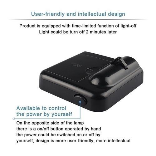 5.Automatic Control & Manual Control: When you open the door, the logo will be shown on the ground, and it will turn off automatically after 2 minutes. If you want the light on/off, just need to press the button on the head of the light.
