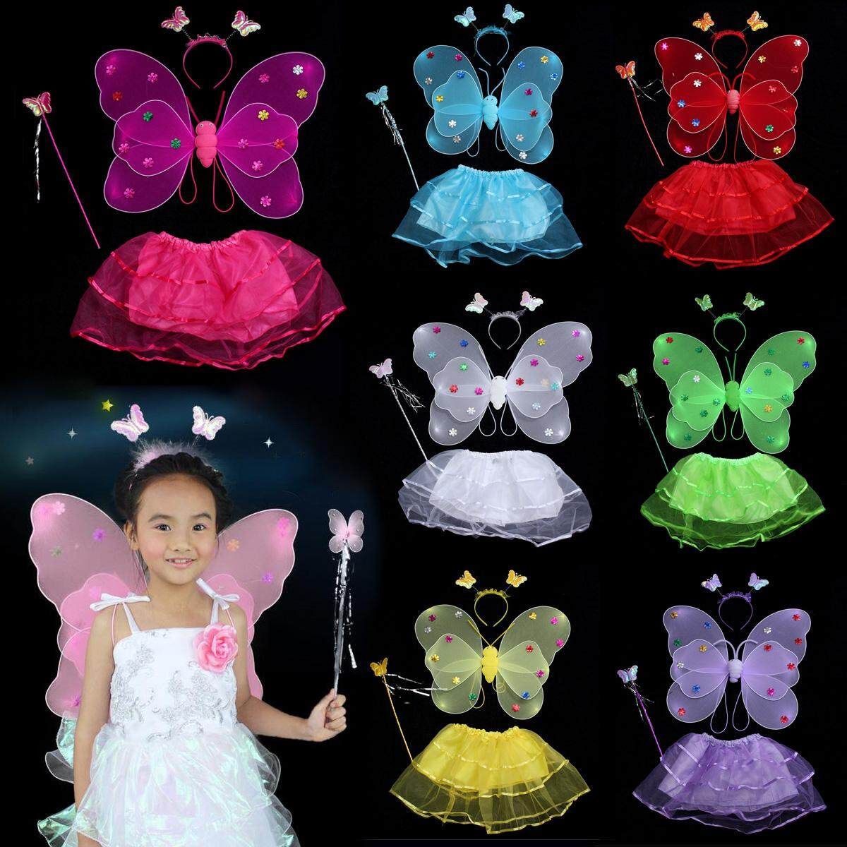 1pcs head hoop + 1pcs wings + 1pcs wand + 1pcs skirt pink