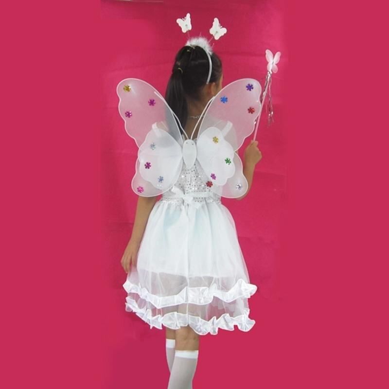 1pcs head hoop + 1pcs wings + 1pcs wand + 1pcs skirt white