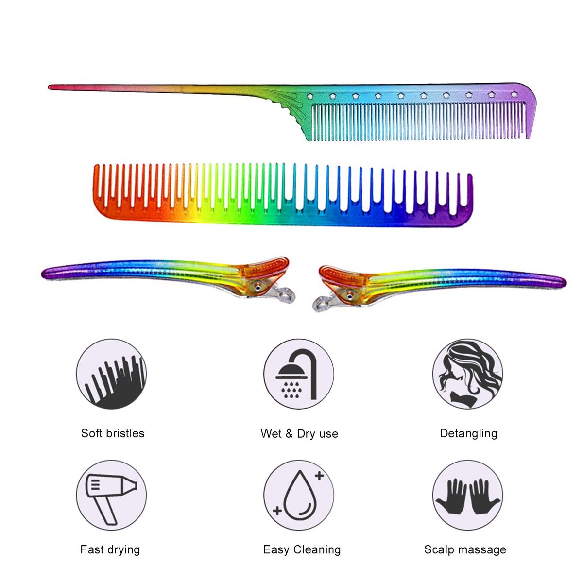4 pieces Rainbow color hair comb set, for all types of hair and for all types of hairstyling.