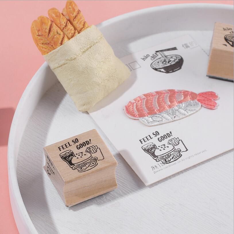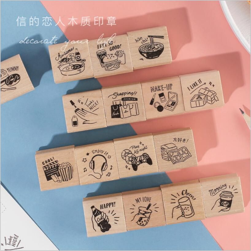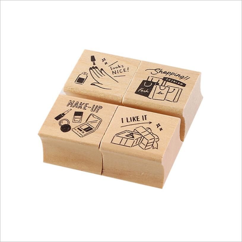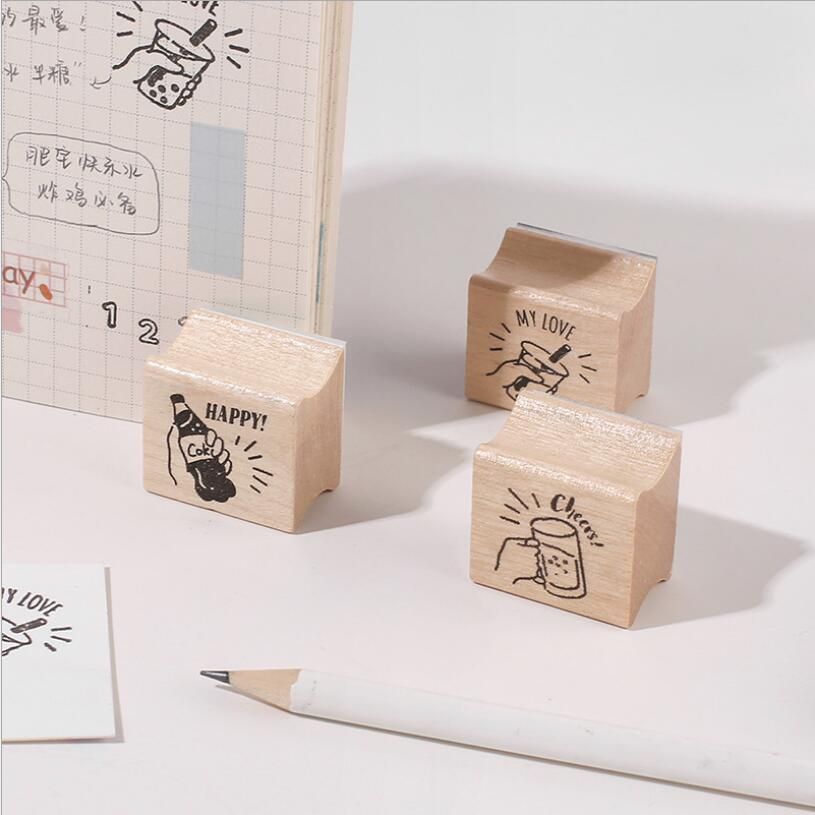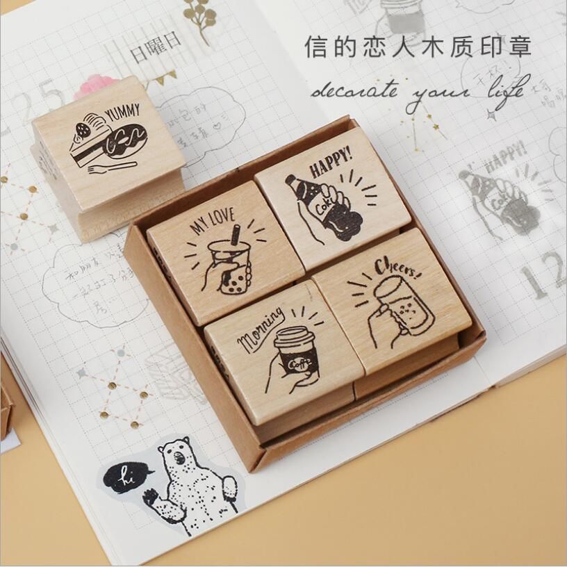 1*4pcs/set Retro Drinks Planner Wooden Rubber Stamp