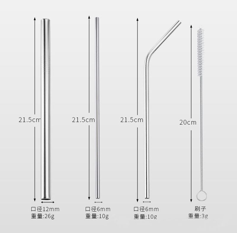 - Pacage Include: 1pc 215*12mm straw, 2pc 215*6mm, 1pc clean brush
