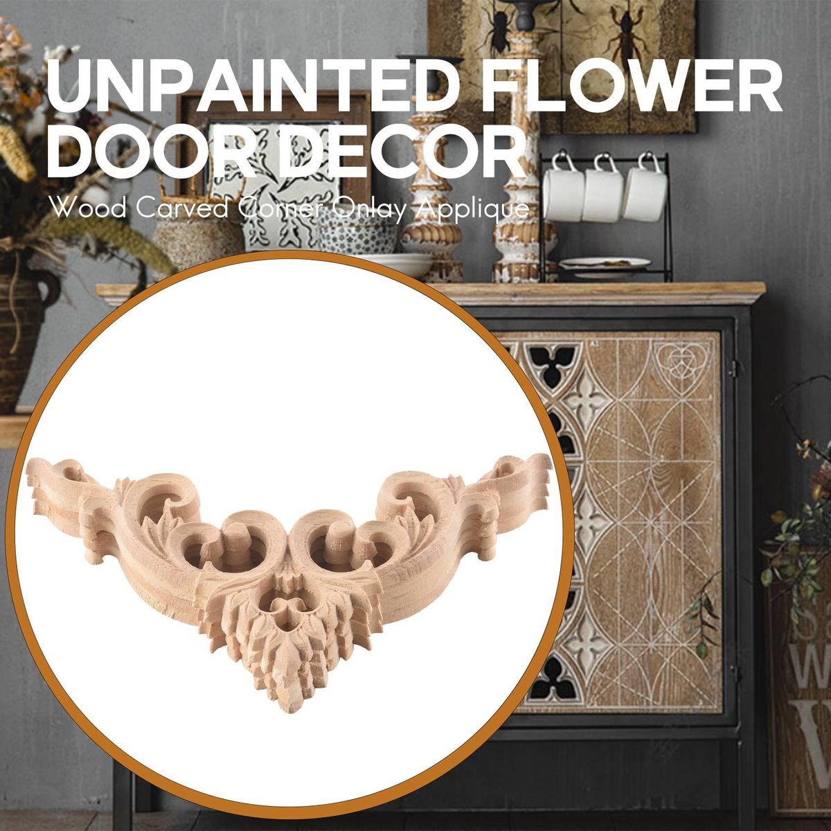 Unpainted Furniture Applique: The wooden applique is light color, so it dyes easily and you could paint it with your favorite color of paint.