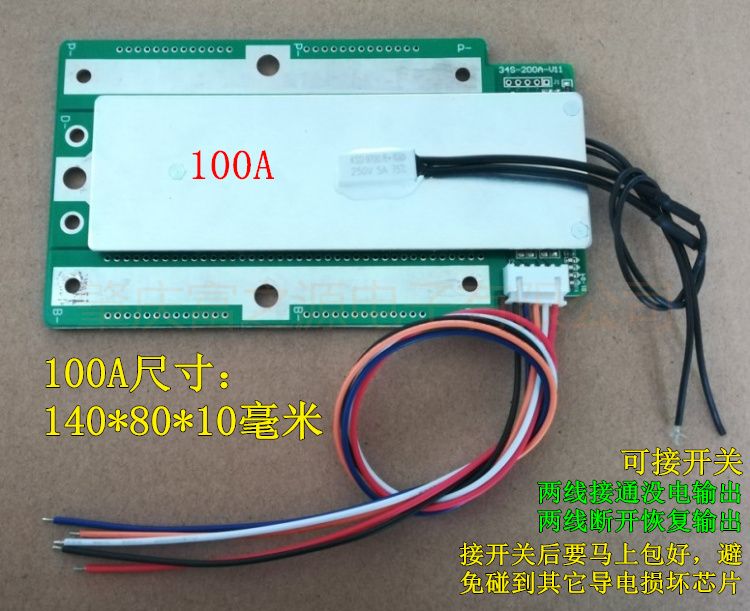 4S 100A 130A 200A 260A 300A 390A 3.2V LifePo4 Lithium Phosphate Protection Board 12.8V High Current Inverter BMS PCM Motorcycle car start Description: Features: charge voltage :14.4V-19V Overcharge protection voltage: any string 3.65V Charging recovery voltage: all below 3.55V Over discharge protection voltage: any string of 2.5V Discharge recovery voltage: all above 3.00V Equalization voltage: single 3.50V starts and lights up Balance current: 0.07A overcharge protection / over-discharge protection / over-current protection /short circuit prtection