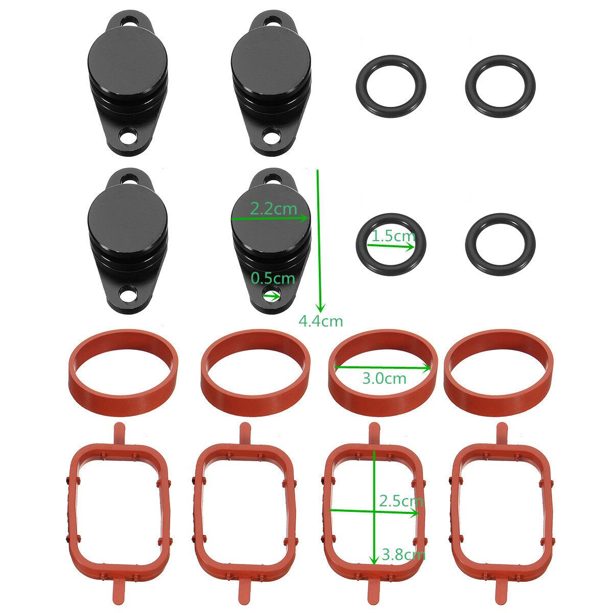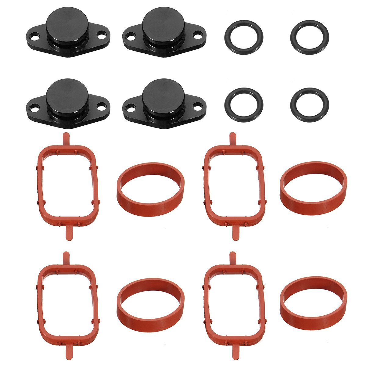 4 x Intake manifold gaskets upper against the cylinder head cover 4 x Intake manifold gaskets lower against the cylinder head 4 x Swirl Flap blanks 4 x O rings