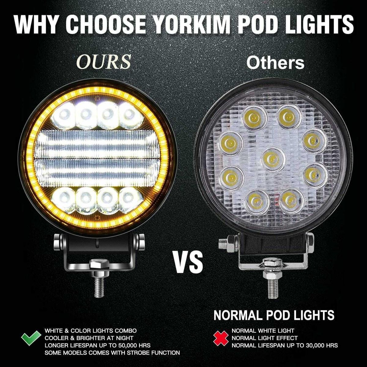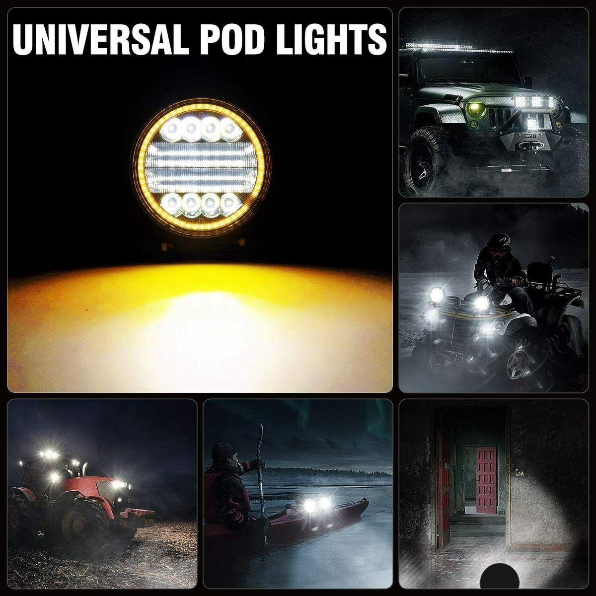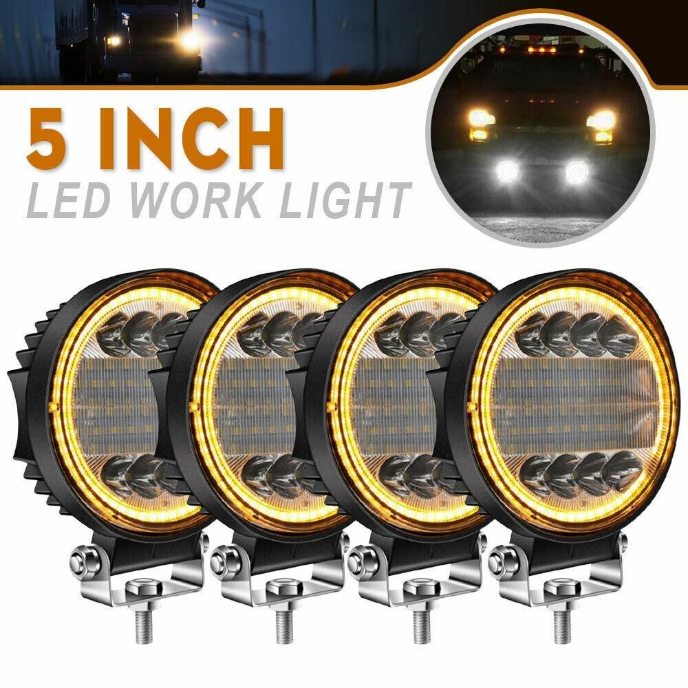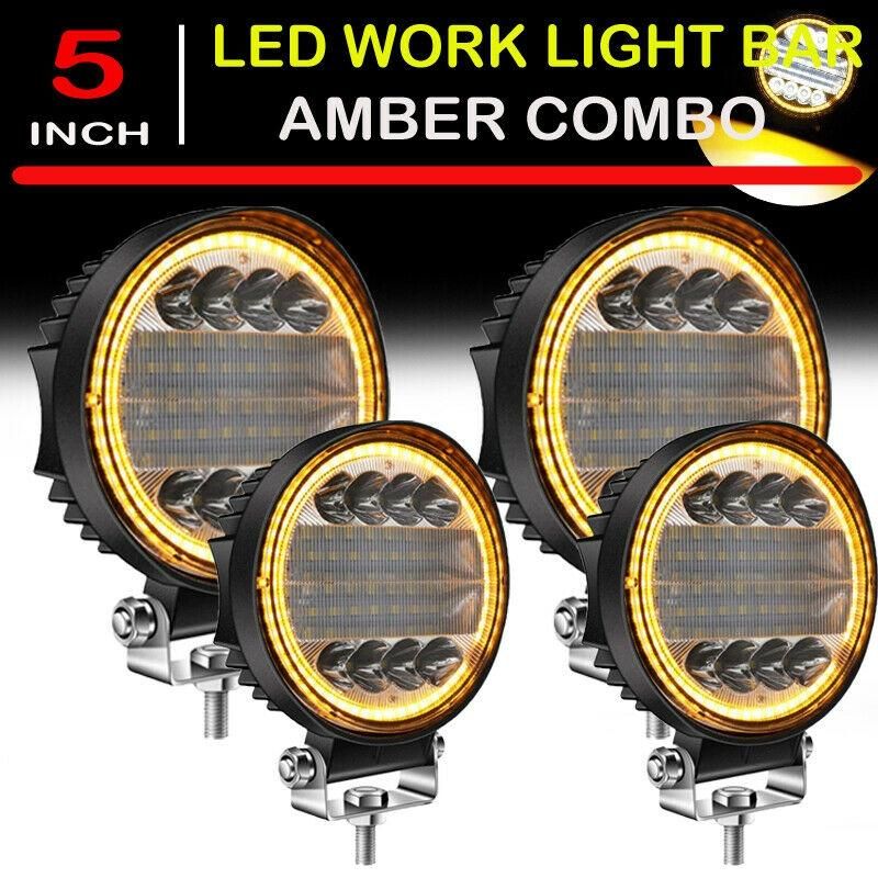 4X LED Work Light Pods Round Amber Combo Light forSuper Brightness Round LED Work Light - LED pods light with high quality LED chips at 6000K color temperature, effectively light up your way in the darkness, which will offer you a safe and better driving experience.
