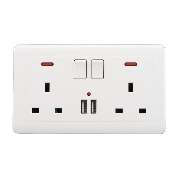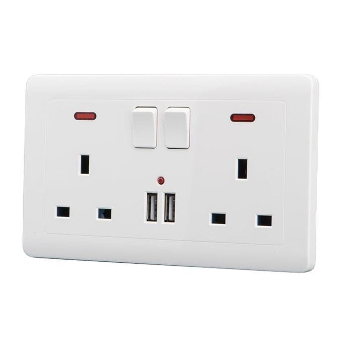 Description:Double Wall UK Plug Socket 2 Gang 13A with Charger Port Outlet Plate