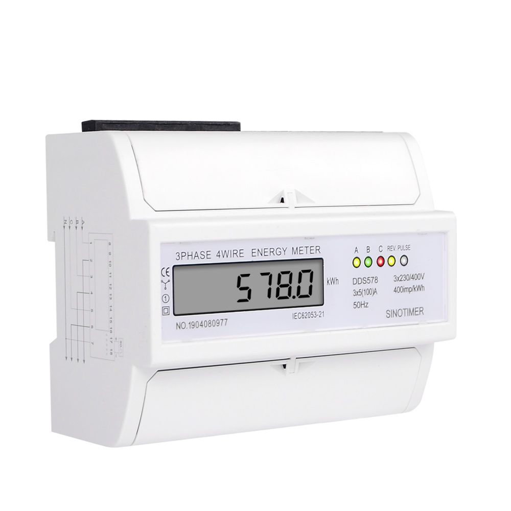 1X 5-100A 380V AC Three Phase 4 Wires LCD Digital Energy Meter kWh Power Consumption Electricity Measurement 35mm DIN Rail Mounting