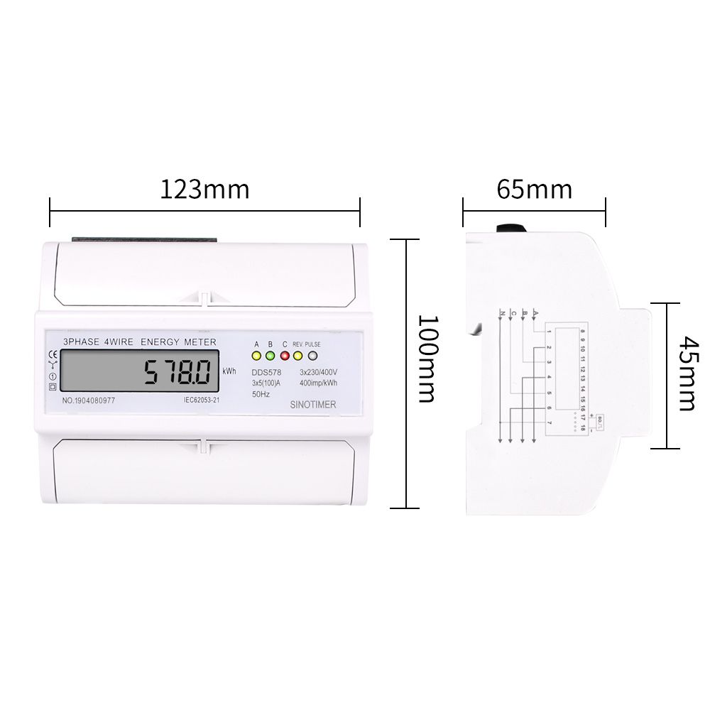 Rated current:5A Maximum current: 100A Pulse frequency: 400imp / kwh Pulse LED indicates working of meter. Pulse output with optical coupling isolation. 35mm DIN rail installation