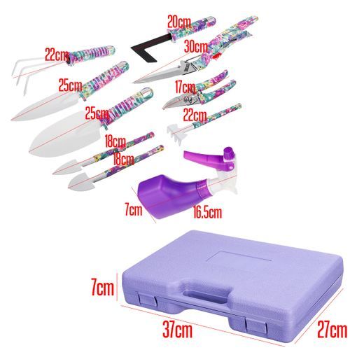 Package Included: 10Pcs/set 1 x Weeding 1 x Grass Shear 1 x Pruning Shears 2 x Rake 4 x Shovel 1 x Water sprinkler 1 x Plastic Case 5Pcs/set 1 x Pruning Shears 1 x Rake 2x Shovel 1 x Water sprinkler 1 x Plastic Case