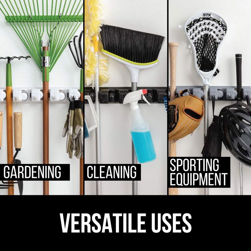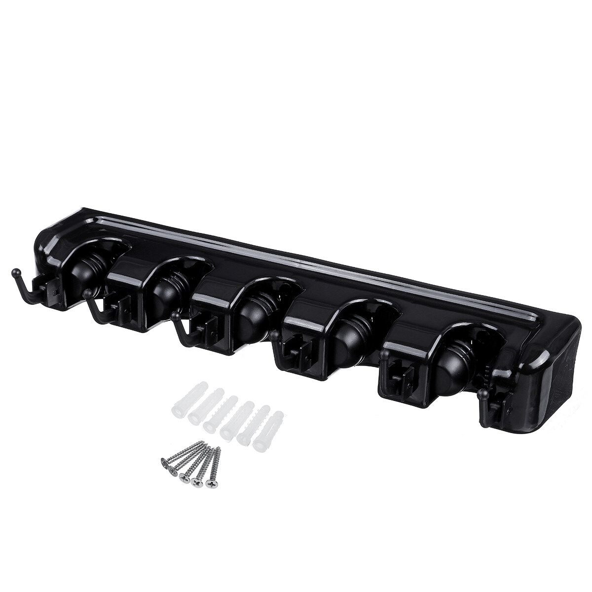 Features:- Tidy Your Home: 5 ball slots and 6 hooks design, organize your annoying cleaning tools within small space.- Spring Loaded: Special spring clips design with rolling rubber ball that make sure the broom and mop will not fall out,including wet mop, dirty rakes, stick vacuum and heavy stuff.- Wide Compatible To Everywhere: Apply to your garage, garden, kitchen, laundry, offices and more. It is strong and sturdy. Keep solid on the wall. It can organize most of tools of your home.- Easy Installation: This mop broom holder with hooks can be installed by just one person, just need mins to to finshed the installation. It will be better to wait 24 hours before start to use it for better adhesion.