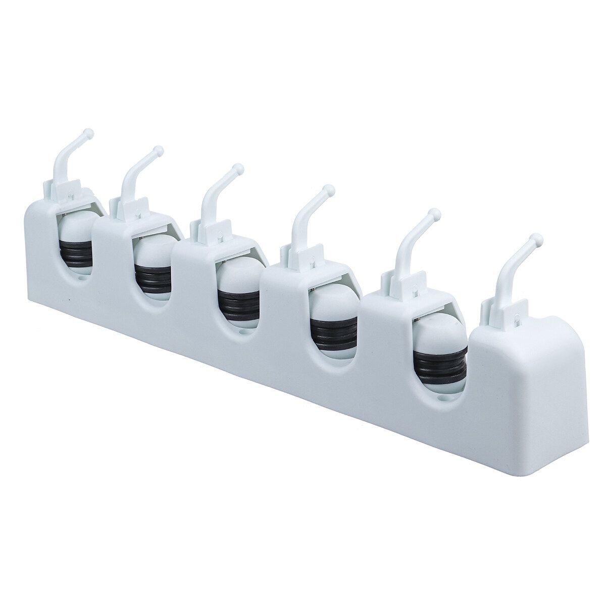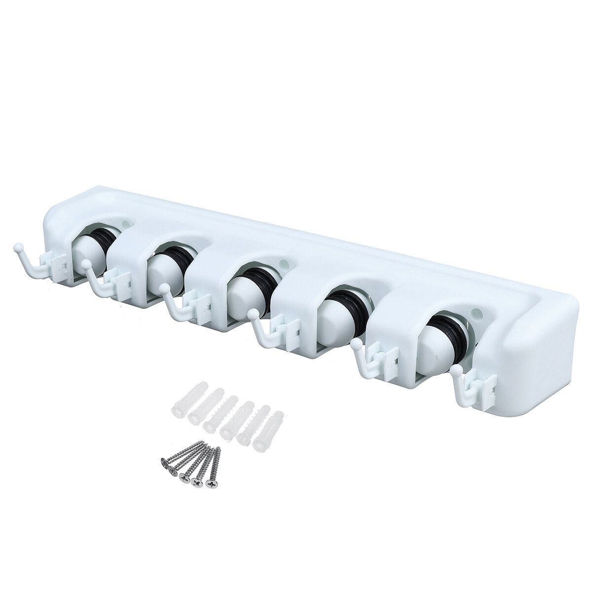 Features:- Tidy Your Home: 5 ball slots and 6 hooks design, organize your annoying cleaning tools within small space.- Spring Loaded: Special spring clips design with rolling rubber ball that make sure the broom and mop will not fall out,including wet mop, dirty rakes, stick vacuum and heavy stuff.- Wide Compatible To Everywhere: Apply to your garage, garden, kitchen, laundry, offices and more. It is strong and sturdy. Keep solid on the wall. It can organize most of tools of your home.- Easy Installation: This mop broom holder with hooks can be installed by just one person, just need mins to to finshed the installation. It will be better to wait 24 hours before start to use it for better adhesion.
