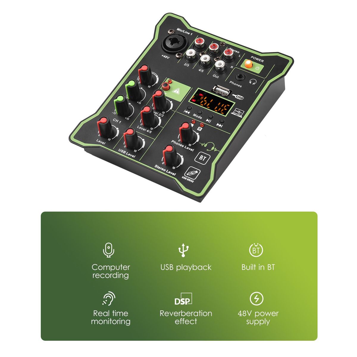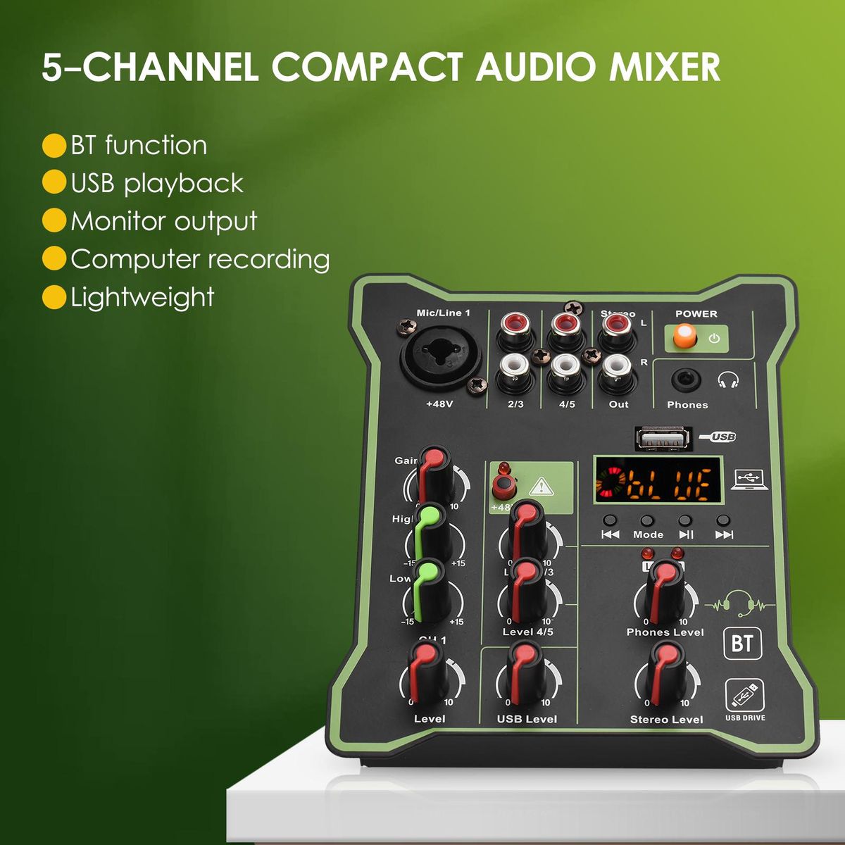 Buy 5-Channel Compact Audio Mixer Sound Mixing Console 48V Phantom Power USB Audio Interface LED Display Built-in Reverb Effect BT Function for DJ Recording Live Broadcast Karaoke in Nigeria