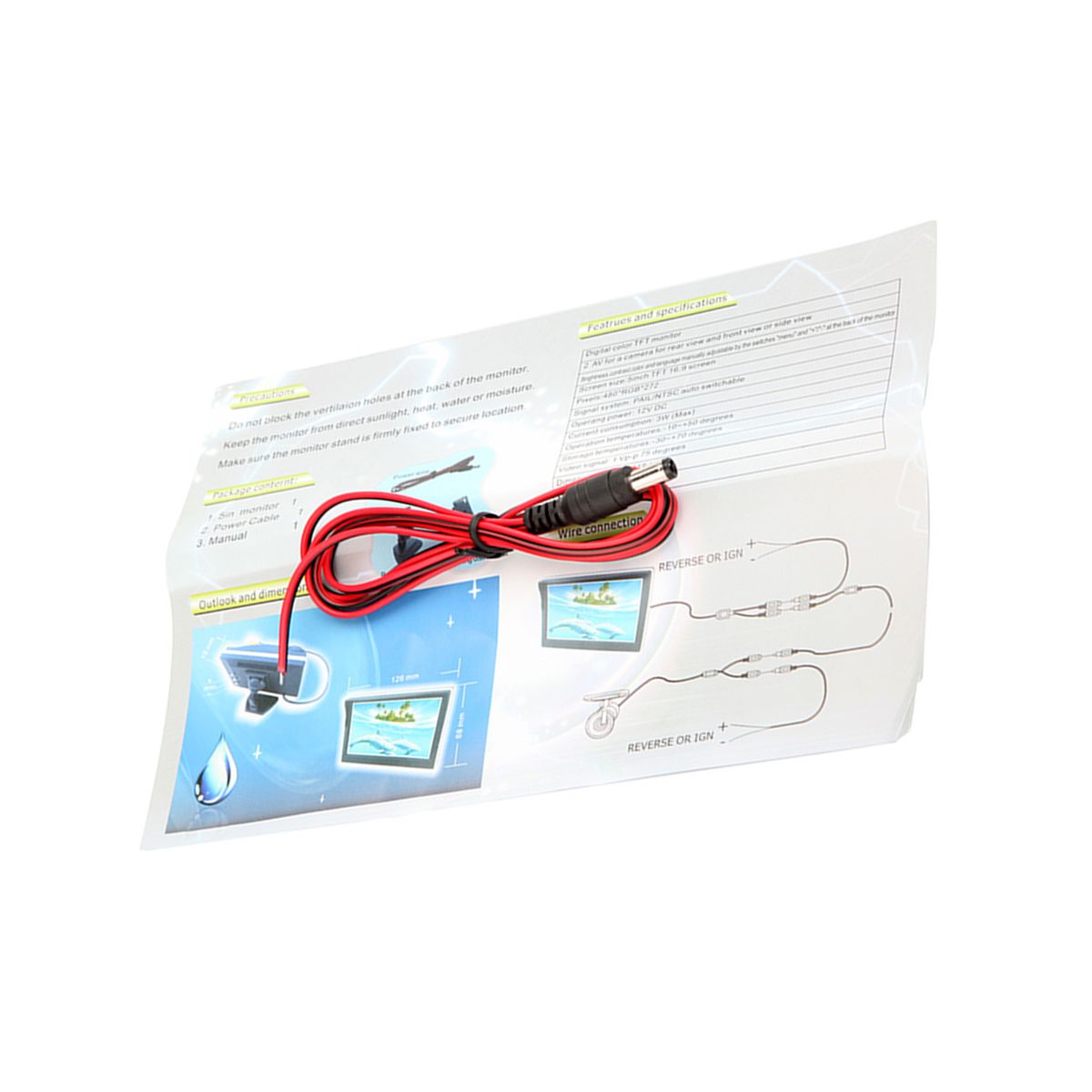 With 2 video input port: white video cable connects to car rearview camera; the yellow one connects to DVD or VCD.