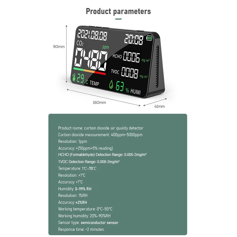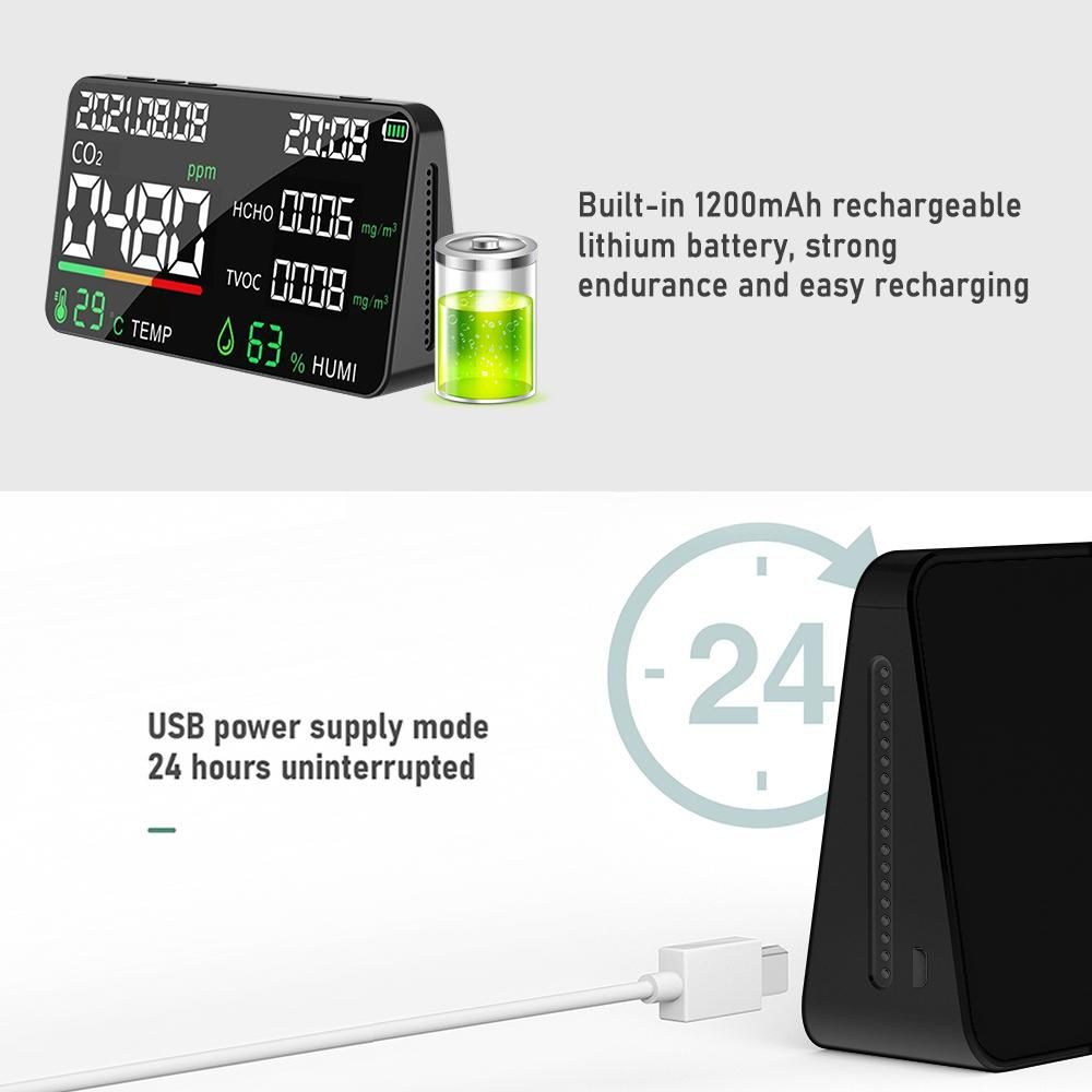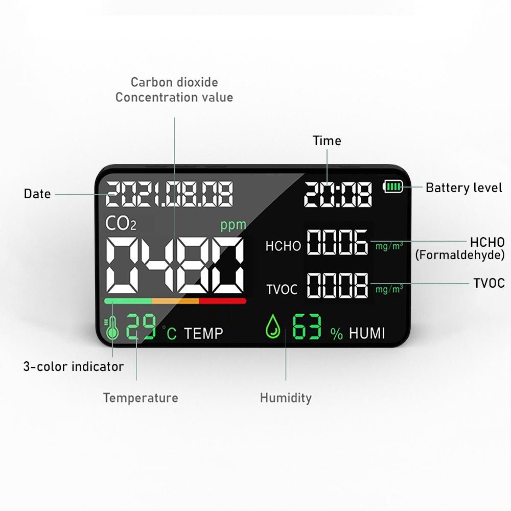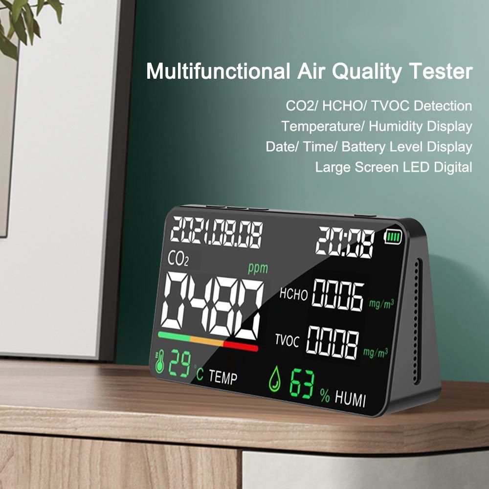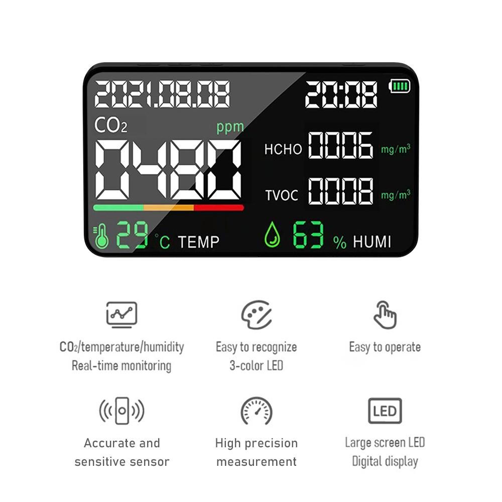 Buy 5 in 1 Air Quality Monitor LED Digital CO2 HCHO TVOC Temperature Humidity Tester USB Rechargeable Indoor Carbon Dioxide Meter for Room Office Greenhouse Warehouse in Nigeria