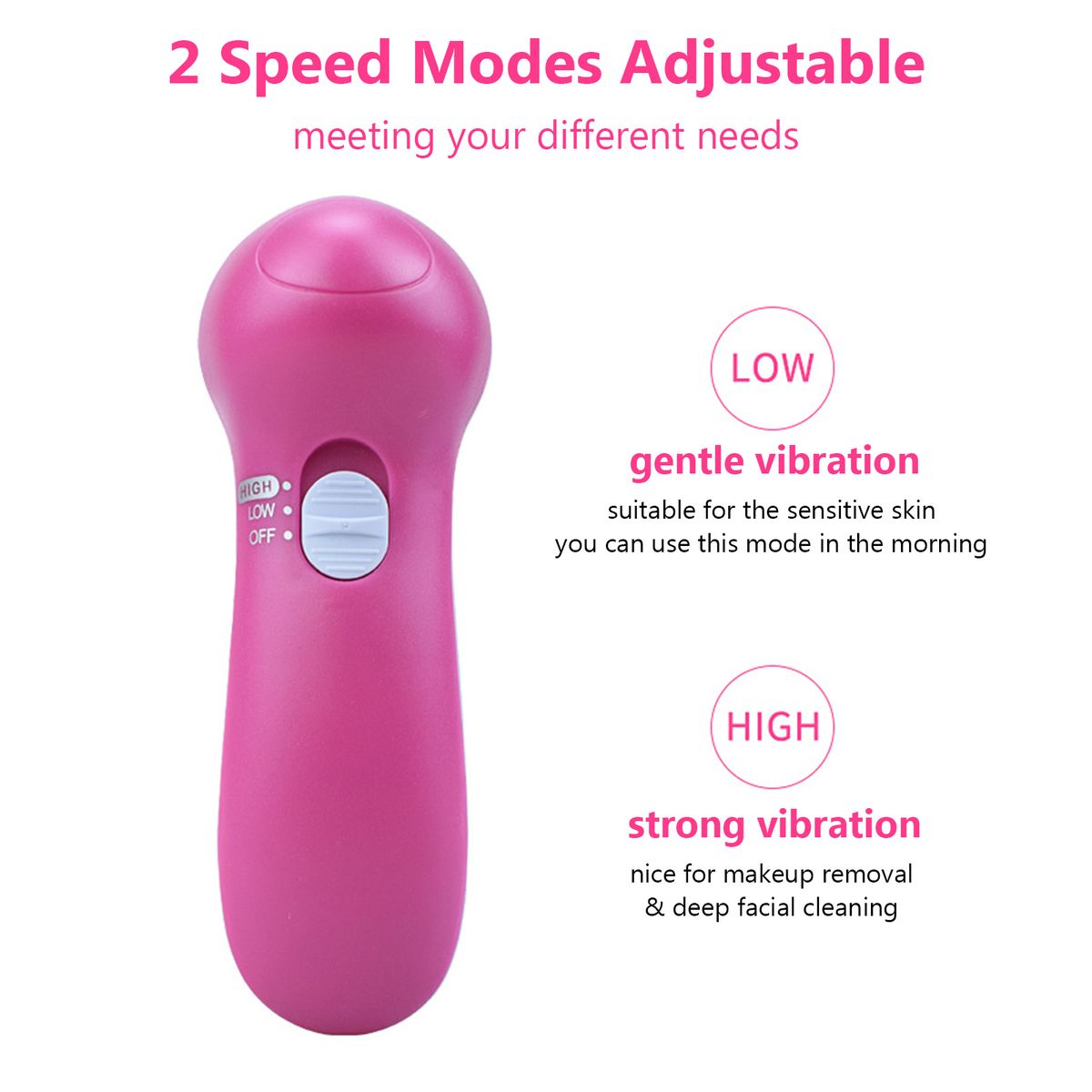 2 Vibration speeds adjustable, you can choose the one you want to give yourself a massage and cleansing.