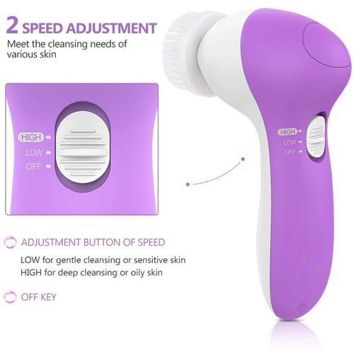 The generation of manual skin care seems to be a thing of the past. This Electric face brush cleanses the skin up to 10 times more effectively than manual cleaning. You can give yourself a full spa-quality skin-cleansing treatment any time you want.The fact that it's battery-powered makes it even more portable, and also makes it totally safe to use in the shower or tub. With the two-speed motor you can choose from gentle or vigorous, and with five heads, you'll always have the exact right tool for every job. With innovative pleasant brush filaments, without skin irritation.