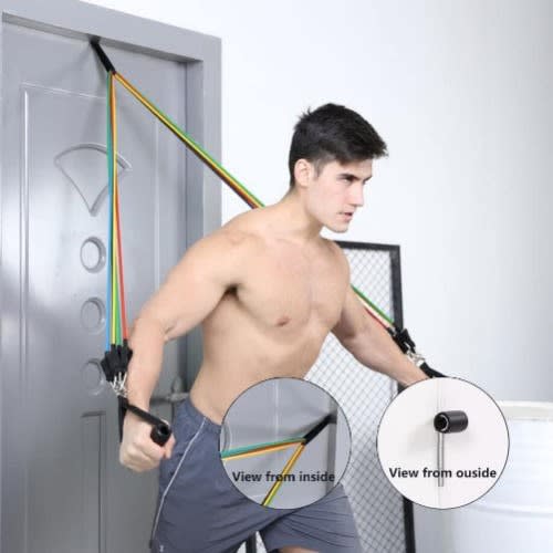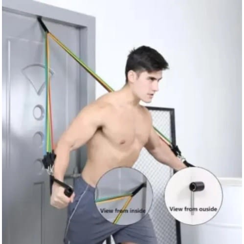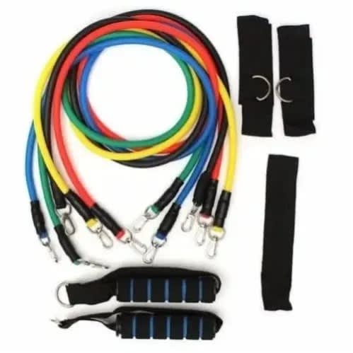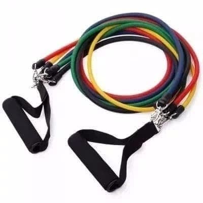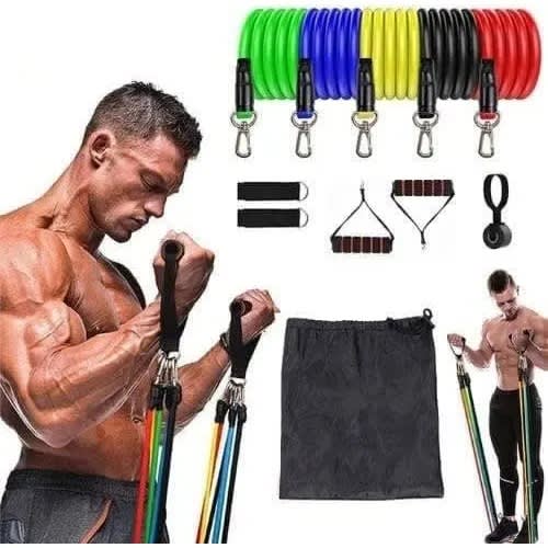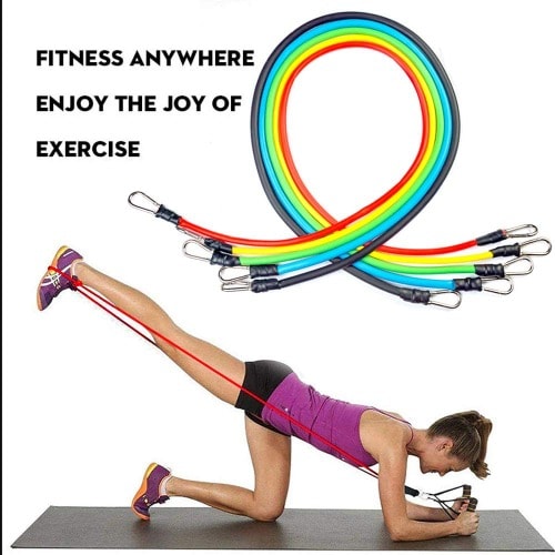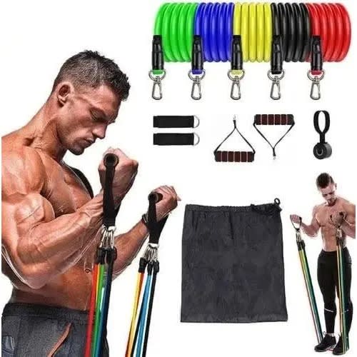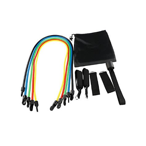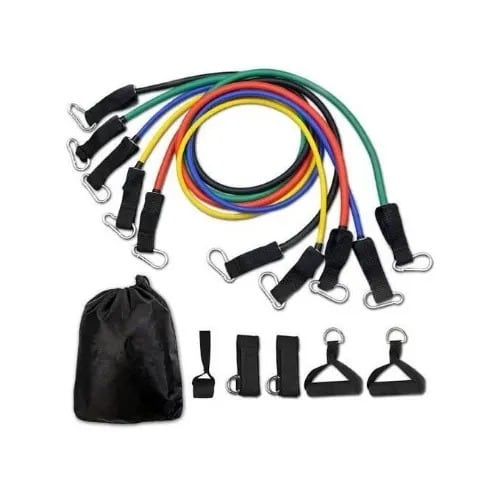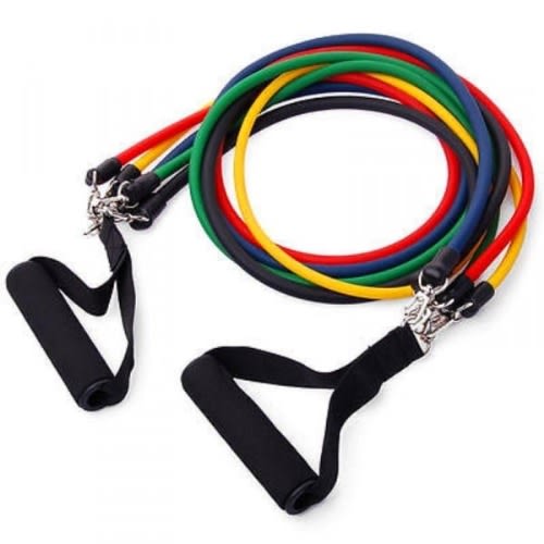 Resistance Bands Set - High Quality Latex Elastic Bands muscle body Workout Bands, Exercise Bands, Fitness Bands, Door Anchor, Handles, Legs Ankle Straps and Carry Bag for Resistance Training, Physical Therapy, Home Workouts, Yoga. Fitness equipment, sports , fitness, Training Tubes. The included carry bag makes it easy to take your bands with you and do any workout away from home or your home gym.GREAT WITH ANY WORKOUT - Our resistance band set can be integrated seamlessly with every popular workout program including Yoga, Pilates and more. Or use them for general exercise, stretching, strength training, and power weight programs. The included carry bag makes it easy to take your bands with you and do any workout away from home or your home gym. Weight Loss, Fat Burning, Fitness Activity Bands.USING ANYWHERE-These resistance bands are not as bulky and expensive as free weights. You can use these bands at home, in a hotel room, in the gym, at the stadium, etc. You can use these to build your muscle everywhere in your spare time. You can even use them to build your body while watching TV at home and you do not have to go to the gym.CONVENIENT-These resistance bands kit is undoubtedly a better choice compared to dumbbells, barbells and many other bulky and expensive fitness equipment. As long as you keep training constantly on your chest, back, abdomen, buttocks, legs, biceps, and triceps, you will be much stronger and more powerful. The resistant bands portable bag is compact and convenient, which ensures you to do exercise no matter at home, in the gym or other training places.SUITABLE FOR EVERYONE- resistance bands set can not only be helpful no matter if you are a professional athlete, a beginner, men or women but also be useful when you are doing yoga, warming up before exercise, strength training and physical therapy rehabilitation.PORTABLE FOR TRAVELING-This workout yoga resistance bands kit comes with a cloth pouch make it easy to take your bands with you and do any workout away from home or gym, also a great option for taking on vocation. It is very compact and does not overload your luggage.Feature:Resistant bands Designed for aerobic and anaerobic exercise, physical fitness and weight loss.Resistant band Can also be used in conjunction with weights and other fitness equipment.It Can effectively build muscle, strength, and tone the body.Resistant band Control the tension by shortening or lengthening the band.Resistant band Strong cushioned foam handles with Zinc alloy clips and D-Ring.Easily creating over 30 different resistance strength levels by attaching 1, 2, 3, 4, or all 5 bands to the handlesPerfect for yoga, pilates, workout and home-based resistant muscle body strength trainingSpecification:Type: Resistance BandsActivity: Fitness, Gym & TrainingResistance: Pull Tubes5 Colour resistance bands each with different level of tension:- Black Resistance band: 30lb (Body Muscle resistance Strength training)- Blue resistance band: 25lb (Body Muscle resistance Strength training)- Red Resistance band: 20lb ( Body Muscle resistance Strength training)- Green resistance band: 15lb (Body Muscle resistance Strength training)- Yellow resistance band: 10lb (Body Muscle resistance Strength training)Included1 x Yellow resistance band1 x Blue resistance band1 x Red resistance band1 x Green resistance band1 x Black resistance band2 x Handles2 x Ankle straps1 x Door anchor1 x Travel BagMaterial: Bands ( resistance tubes ) are made of professional quality rubber latex;Material of handles :Strong cushioned foam;Material of clips: zinc alloy.Function: Arms, Belly,Body, muscle, gym, fitness equipment, Sports & fitness, Comprehensive Fitness Exercise