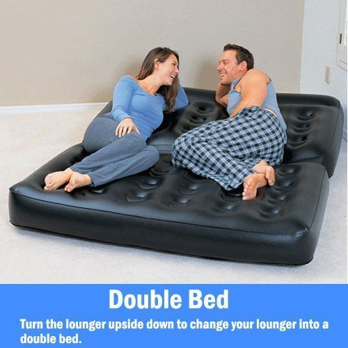 This is a new style High-Quality Inflatable Double Multifunctional Chair is perfect for dormitory, TV room, living room, and bedroom. This sturdy inflatable chair can also be used as a bed and is extra comfortable with its convenient folding design; it can be unfolded as a double bed or folded up as a couch. It is made out of sturdy pre-tested vinyl, with strong construction for additional strength, comfortable surface and can be quickly inflated and deflated!! This amazing and good looking Double Multifunctional Chair is a must-have for any home where sleepovers are common! 5 to 1 Inflated Sofa air Bed Camping, Caravan. Ideal for camping, caravanning or sleepovers 5 to 1 can change from; Sofa, Double Bed (single layer), Single Bed (double layer), Double lounger, Double lounger with backrest.