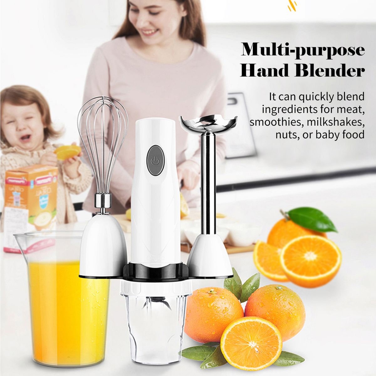 The multi-purpose hand blender has a detachable structure, easy to remove, wash, and store. Powerful functions can meet your daily needs easily.