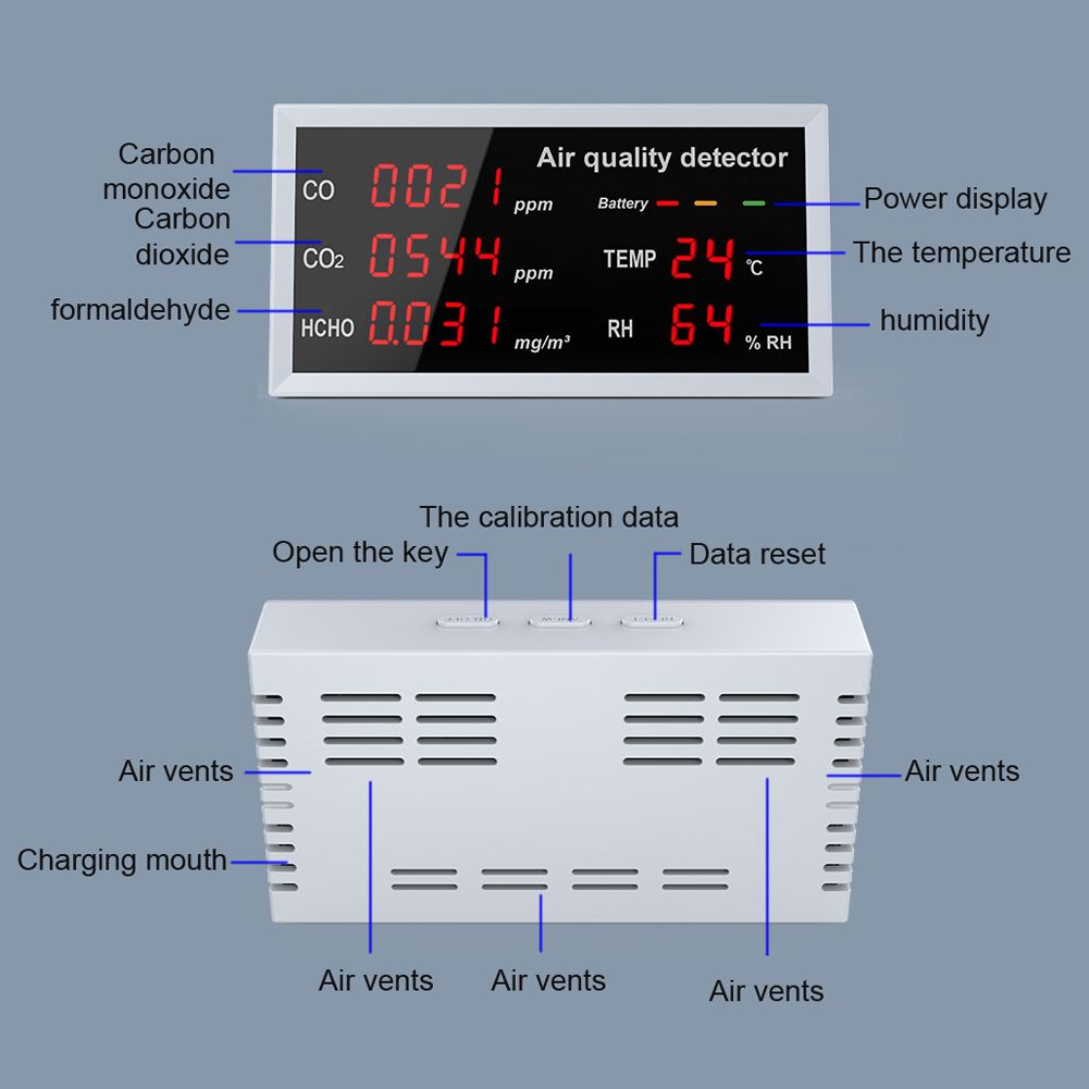 This product can not only detect the CO2 for you,but also can detect the CO, HCHO, temperature and humidity for you, which can give you the data that you care about.